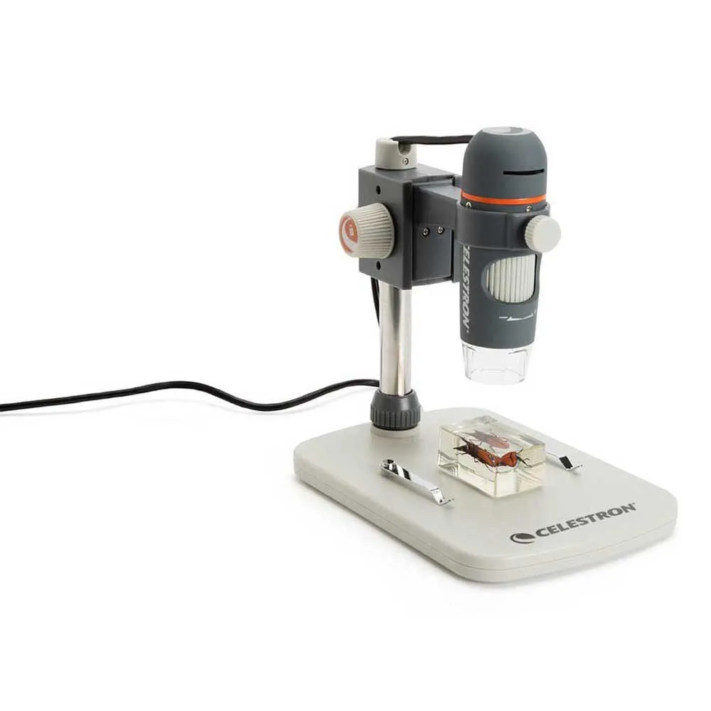 Celestronin kannettava digitaalinen mikroskooppi Pro on helppokäyttöinen, pienitehoinen mikroskooppi, jossa on 5.0 megapikselin kenno valokuvien ja videoiden ottamiseen löydöistäsi.