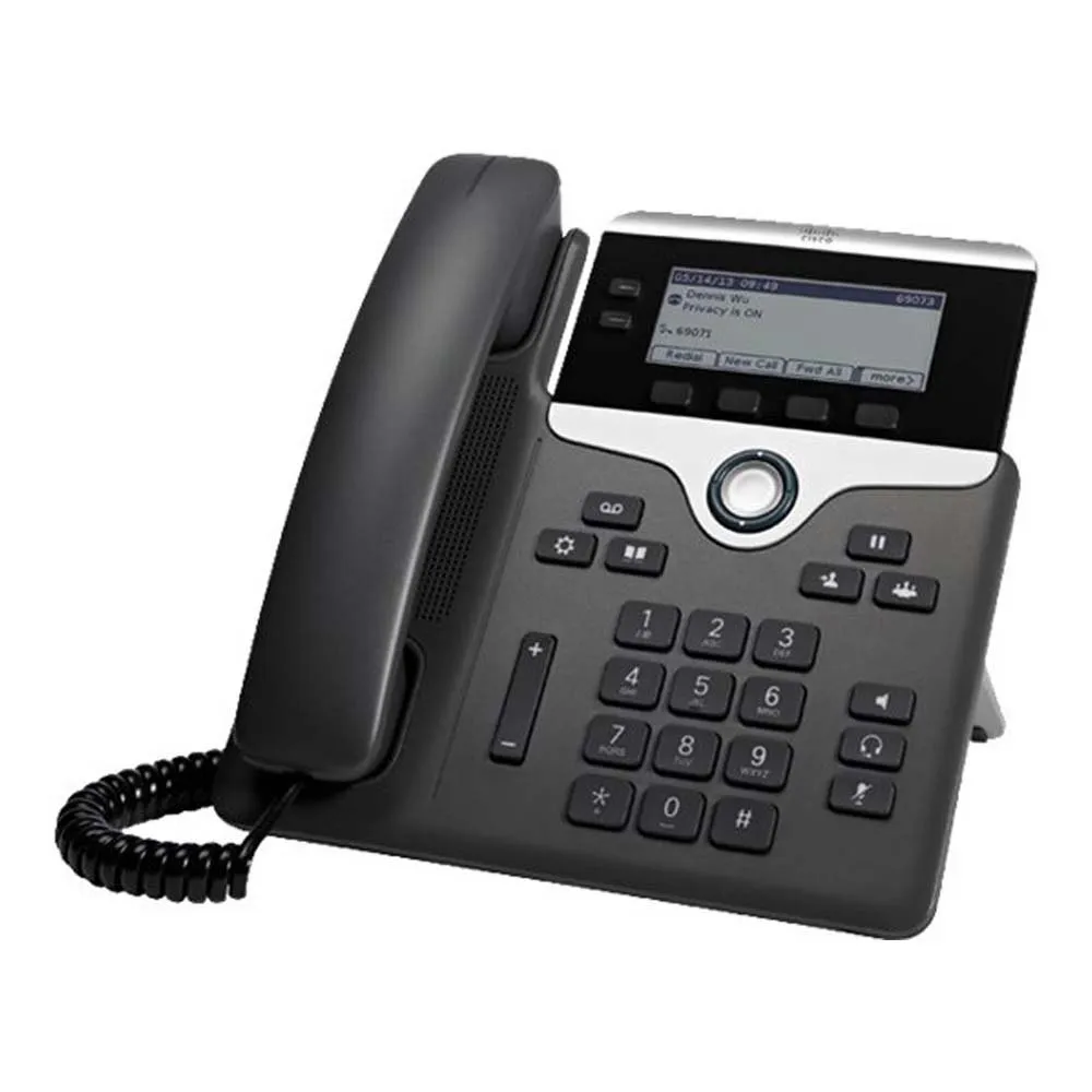 Cisco 7821:n ergonominen muotoilu asettaa etusijalle käyttömukavuuden ja tehokkuuden. Puhelimessa on korkearesoluutioinen, harmaasävyinen näyttö, joka tarjoaa selkeää ja helposti luettavaa tietoa, mukaan lukien puhelun tila, soittajan tunnus ja valikkoasetukset. Intuitiivinen käyttöliittymä yksinkertaistaa navigointia ja antaa käyttäjille mahdollisuuden käyttää nopeasti tarvitsemiaan ominaisuuksia. Erilliset kiinteät näppäimet yleisille toiminnoille, kuten pito, siirto ja neuvottelu, parantavat entisestään käytettävyyttä ja virtaviivaistavat puheluiden hallintaa.