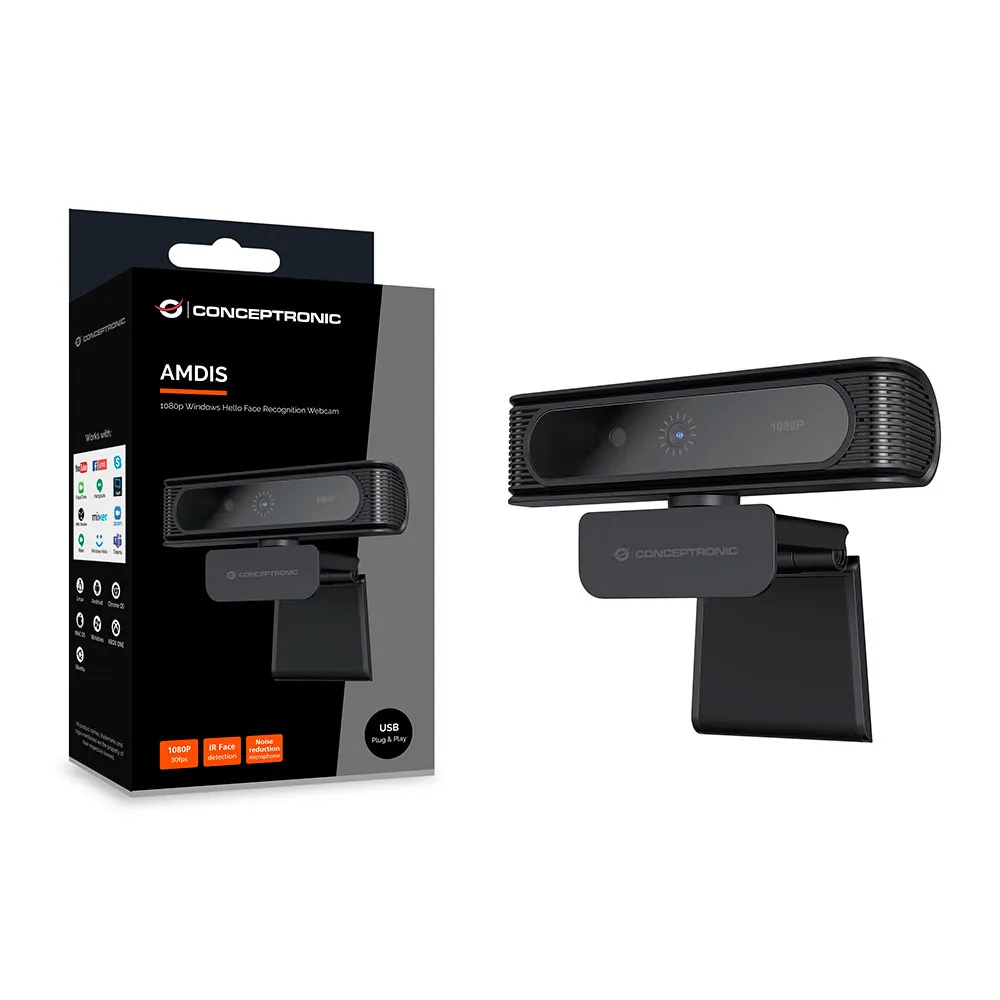 Conceptronic AMDIS09B 1080p Windows Hello -kasvojentunnistuswebkamera.