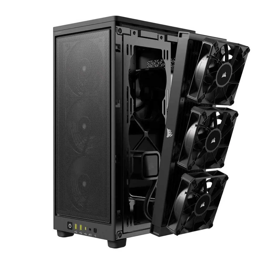 CORSAIR 2000D Airflow erottuu jäähdytyskapasiteetillaan. Se voi sisältää jopa 12 tuuletinta, mukaan lukien tuki useille 140 mm tuulettimille erinomaista ilmanvirtausta varten. Etupaneeli on optimoitu maksimaaliseen ilmanoton saavuttamiseksi, jolloin viileä ilma pääsee suoraan komponentteihisi. Lisäksi kotelo tukee useita jäähdyttimiä, mukaan lukien 360 mm jäähdytin edessä ja yläosassa, mikä mahdollistaa vankan nestejäähdytysratkaisun jopa kaikkein tehokkaimmille järjestelmille.