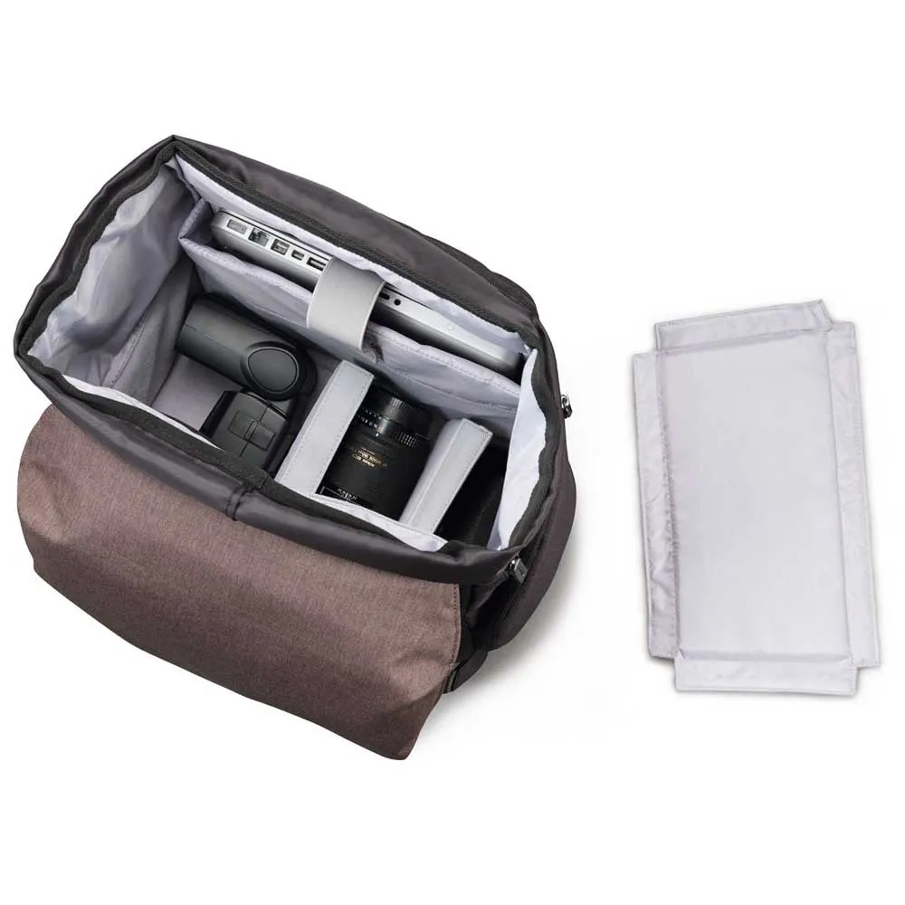 Bristol Daypack 600+ -repun erottuvin ominaisuus on sen nerokas 2-in-1-rakenne. Sen ytimessä on täysin irrotettava, täysiverinen kameralaukku. Käytä tätä kompaktia, pehmustettua sisäosaa sellaisenaan lyhyillä valokuvausretkillä tai kun haluat matkustaa kevyesti, ja siinä on oma kantohihna. Kun matkasi vaatii enemmän varusteita, aseta se takaisin pääreppuun. Tämän ainutlaatuisen järjestelmän avulla voit muuntaa erillisen kameralaukkusi tilavaksi ja tyylikkääksi päiväreppuksi sekunneissa, mikä antaa sinulle vapauden sopeutua mihin tahansa tilanteeseen.