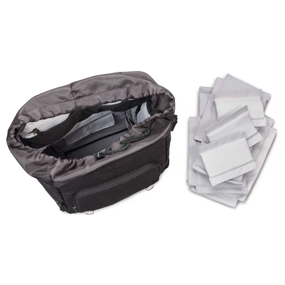 Digitaalisille luoville tekijöille on erillinen, pehmustettu takaosasto, jossa säilytetään turvallisesti kannettavaa tietokonetta tai tablettia jopa 13 tuuman kokoon asti, mikä pitää työnkulkusi liikkuvana ja suojattuna. Integroitu jalustan pidike repun sivussa mahdollistaa tukijärjestelmäsi turvallisen kuljettamisen, mikä varmistaa, että olet aina valmis teräviin ja vakaisiin kuviin. Useita pienempiä taskuja ja lokeroita on sijoitettu strategisesti muistikorttien, paristojen, suodattimien ja älypuhelimen järjestämistä varten.