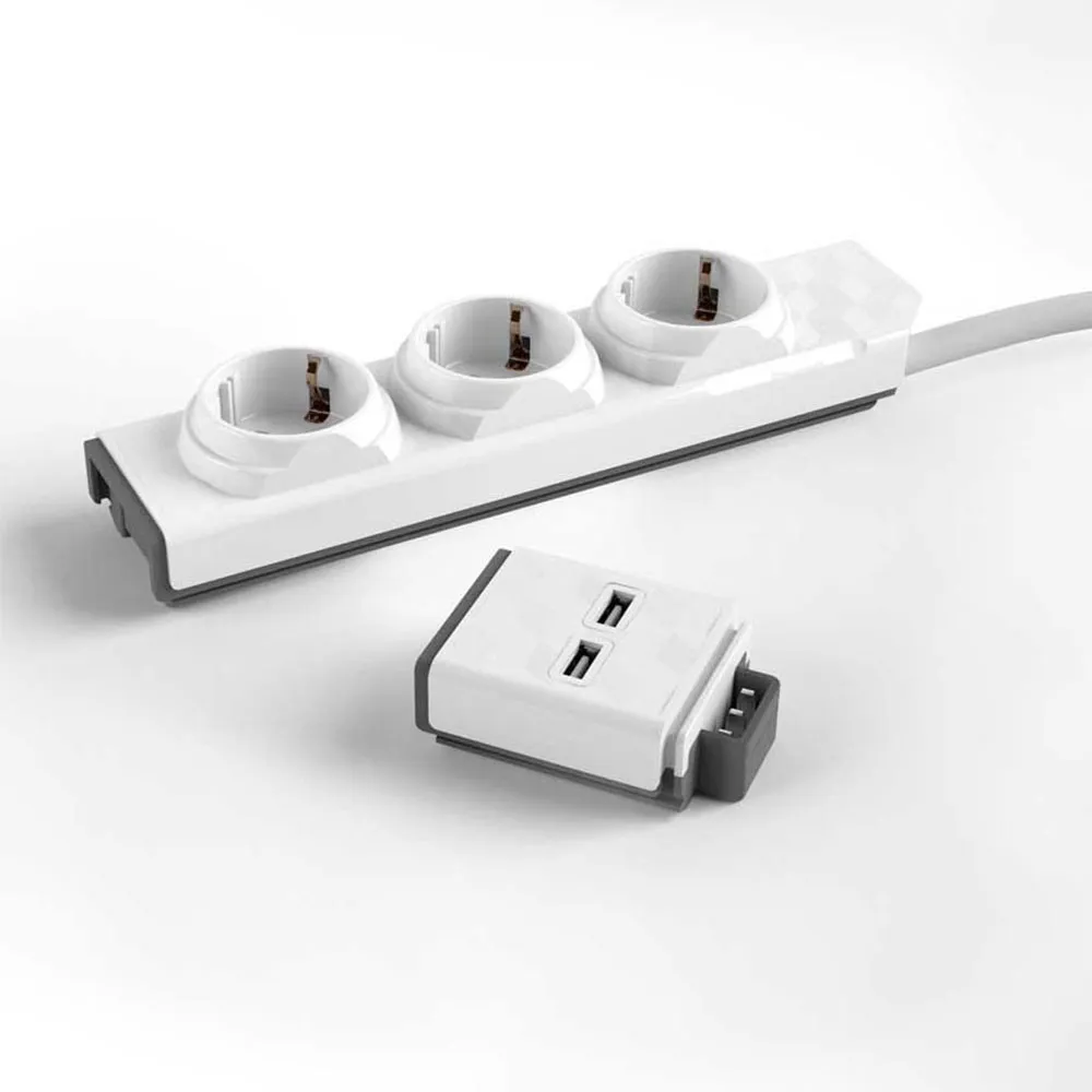 Moduuli 2x USB on laajennus, jossa on kaksi erillistä USB-porttia ja joka on yhteensopiva PowerStrip Modular -virtajohdon kanssa.