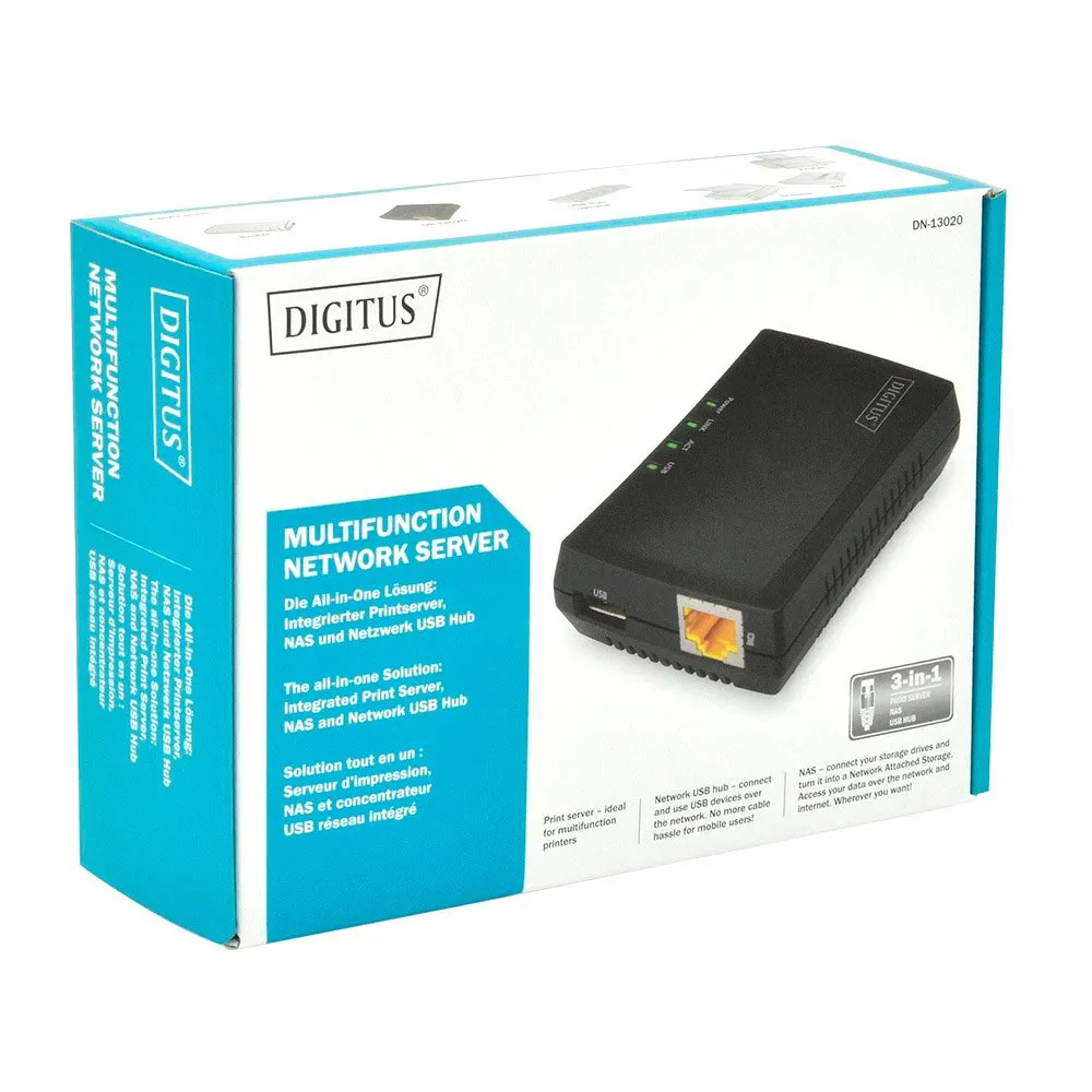 Tekniset tiedot Digitus 1-Port USB 2.0 Multifunction Network Server
