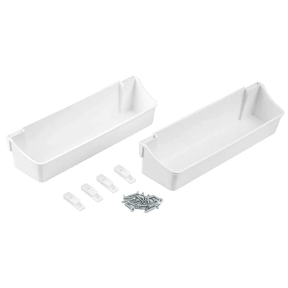 Käytännölliset valkoiset muoviset lisätasot pienien esineiden ja tarvikkeiden järjestämiseen keittiön ja kylpyhuoneen kaapeissa ja huonekaluissa. Niiden asentaminen on erittäin helppoa mukana toimitettujen tukien ja asennusruuvien ansiosta.