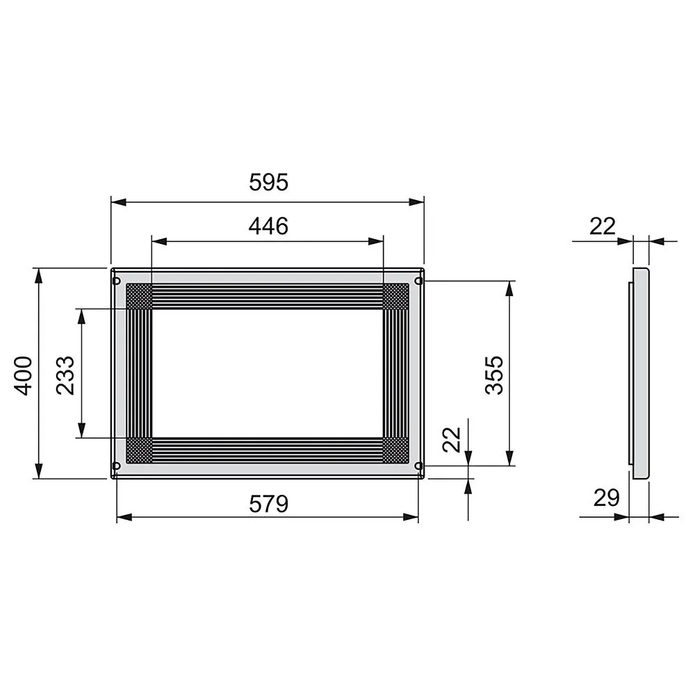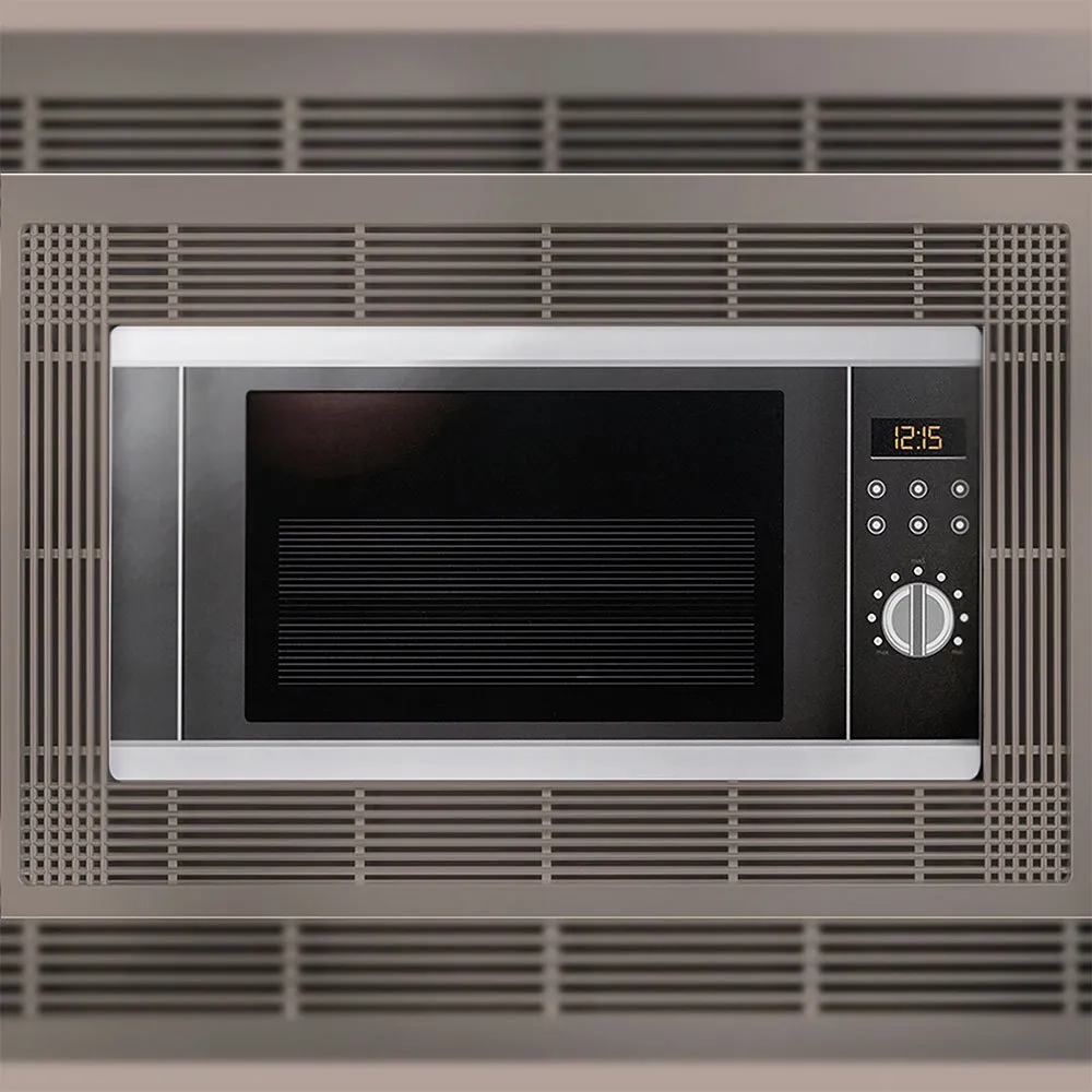 Mikroaaltouunin upotuskehys 600 mm leveään keittiökaappiin, muovia, saatavana 3 erilaista pintakäsittelyä: valkoiseksi ruiskutettu, metalliharmaa tai elektrolyyttisesti satiininikkelipinnoitettu (ruostumattoman teräksen kaltainen). Siinä on heikennetty hyllytaso, jotta se voidaan leikata ja säätää laitteen mukaan, jotta mikroaaltouuni voidaan upottaa täysin kaappiin. Helppo asentaa, sisältää kaikki tarvittavat asennustarvikkeet: kiinnitysruuvit, ruuvien peittävä kansi ja 4 tukikappaletta mikroaaltouunin oikeaan korkeuteen asettamiseksi.