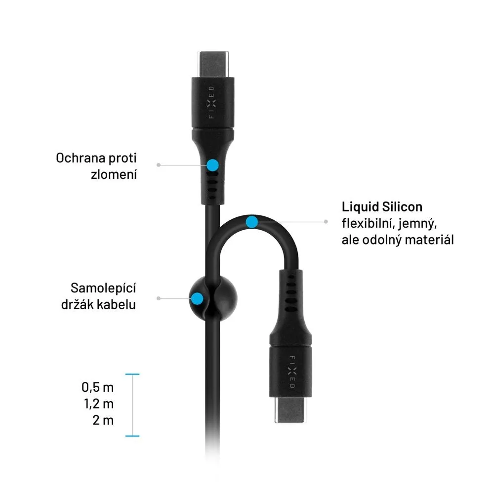 FIXED Liquid Silicone -data- ja latauskaapeli käytännöllisessä pidennetyssä versiossa kaksipuolisilla USB-C-liittimillä on ihanteellinen lisävaruste modernille laitteellesi. Se lataa puhelimesi, tablettisi, kannettavasi ja muun elektroniikan jopa 60 W:n teholla, samalla kun se hoitaa musiikin, valokuvien ja kaiken tiedonsiirron 480 Mbps nopeudella. Kaapelin suojavaippa on valmistettu erityisestä materiaalista nimeltä Liquid Silicone. Tämä tekee FIXED-kaapelista paljon kestävämmän ja joustavamman kuin tavalliset kaapelit, se ei sotkeudu ja on pehmeä kosketukselle. Pakkauksesta löydät myös käytännöllisiä lisävarusteita – kiristysnyörin helpottamaan kaapelin kuljetusta ja liimattavan järjestelijän kaapelin kiinnittämiseen valittuun paikkaan.