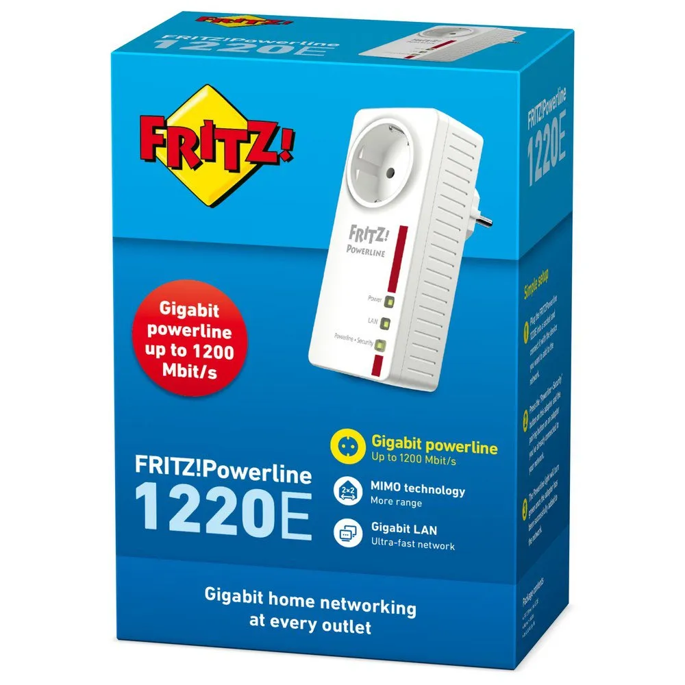 - Saatavana yksittäin tai settinä (2 x FRITZ!Powerline 1220E) Nopea verkkoyhteys: - Integroi verkkolaitteesi kotiverkkoon yksinkertaisesti sähköjohtojen avulla.