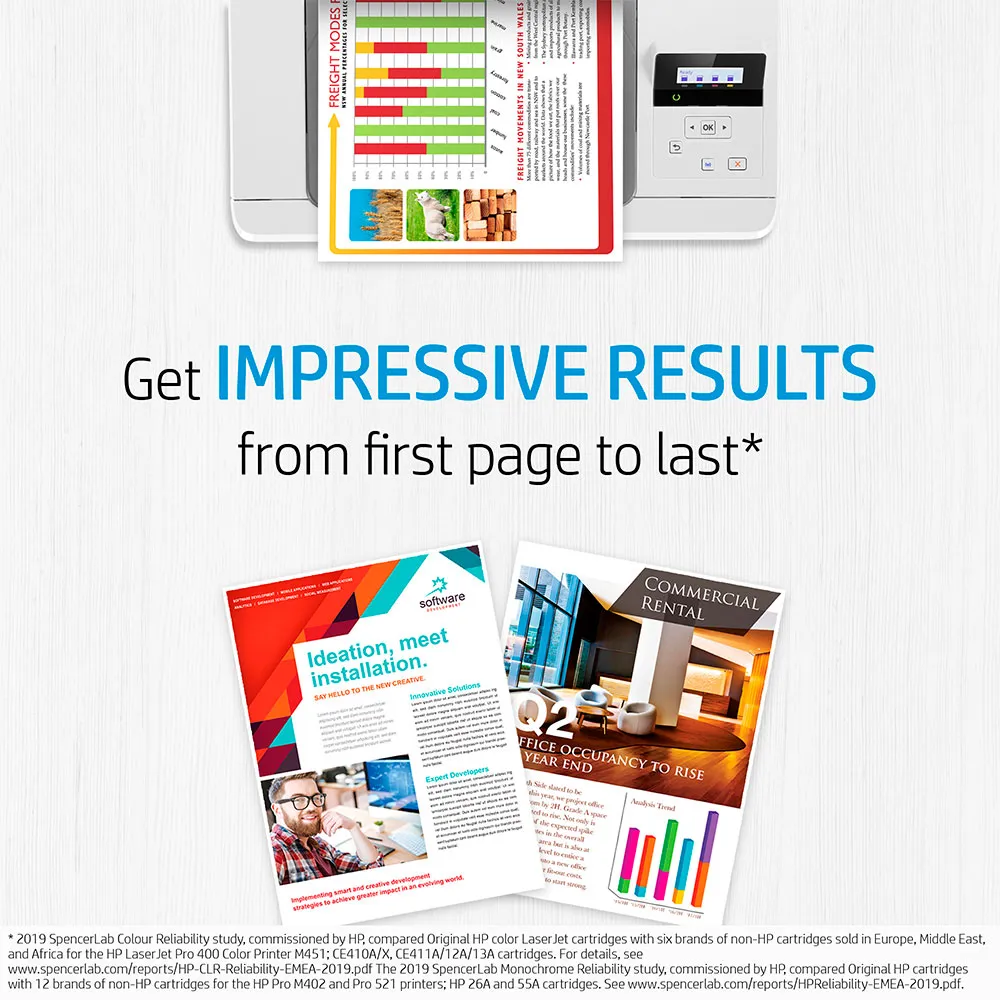 HP:n kaikki-in-yksi-kasettisuunnittelu ja kehittynyt värikasettiresepti tekevät terävästä, ammattimaisesta tulostamisesta helppoa, luotettavaa ja kustannustehokasta.