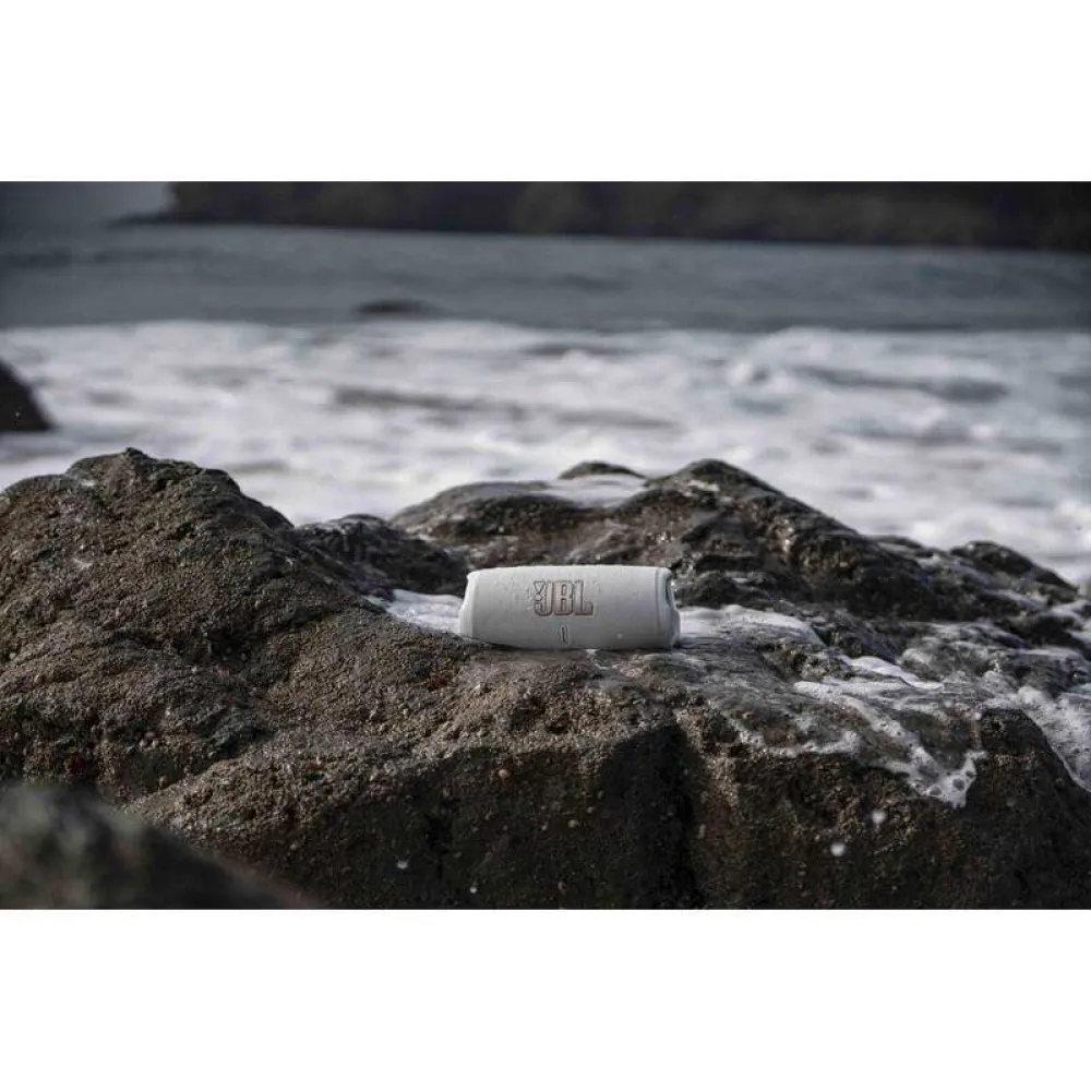 Kestävä ja vedenpitävä muotoilu tekee Charge 5:stä ihanteellisen ulkokäyttöön, olitpa sitten rannalla, uima-altaalla tai retkeilymatkalla. Tyylikäs ja moderni muotoilu sekä kätevä kantohihna tekevät Charge 5:n ottamisesta mukaan helppoa.