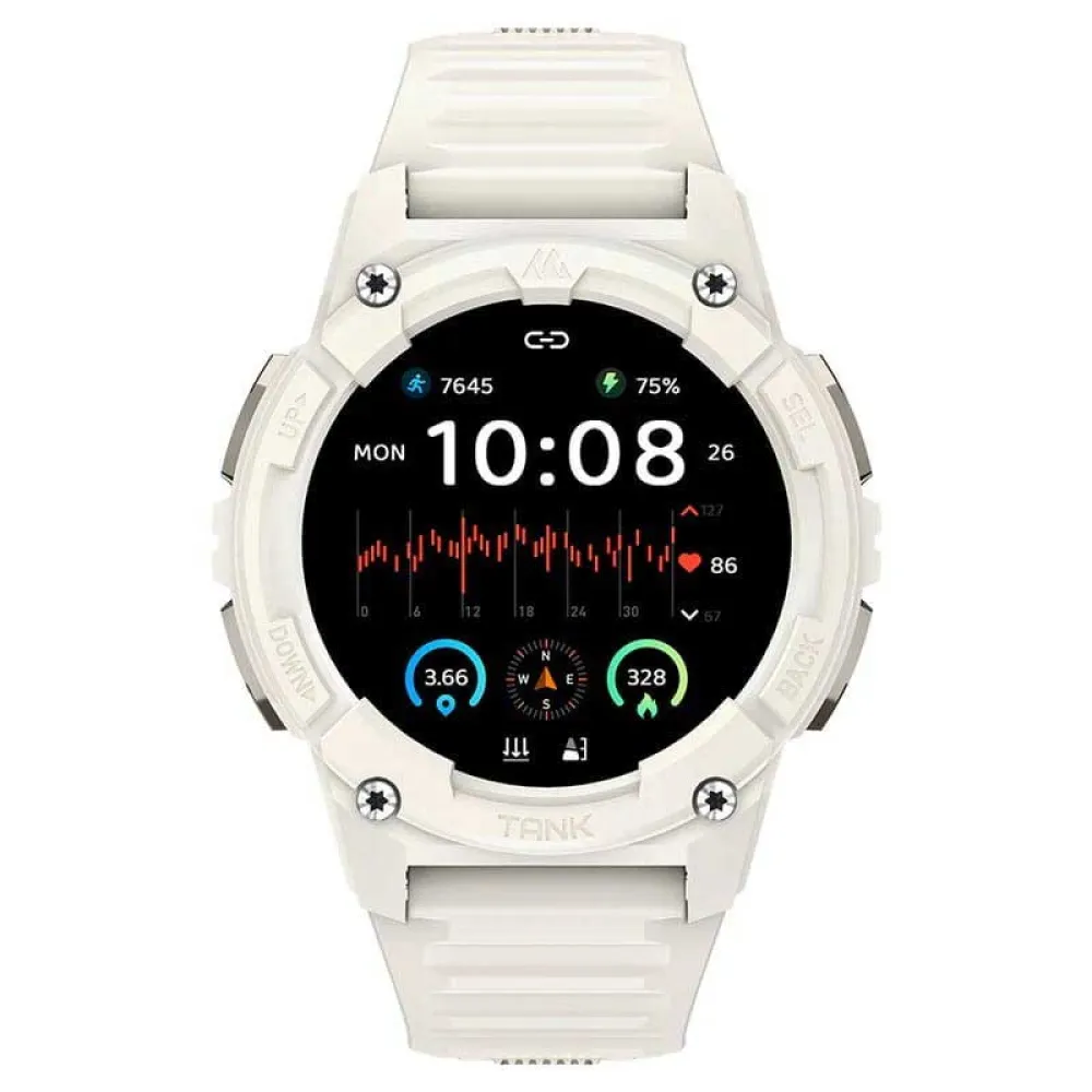 Kospet Tank S2 on kestävä älykello, jossa on naisellinen muotoilu ja 1.32 tuuman AMOLED-näyttö, jota suojaa Corning Gorilla Glass. Sen kestävä rakenne ja metallikuori ovat IP69K-, MIL-STD-810H- ja 5 ATM -sertifioituja, joten se soveltuu kaikenlaisiin haastaviin ympäristöihin. Sen ominaisuuksiin kuuluu tarkka anturi, joka seuraa sykettä ja muita terveysindikaattoreita, yli 170 urheilutilaa ja integroitu tarkkuus-GPS. Lisäksi siinä on Bluetooth v5.3 -yhteys, jonka avulla voit vastaanottaa puheluita suoraan ranteestasi. Kaikki tämä akulla, joka tarjoaa jopa 15 päivän akun keston täydellä latauksella.