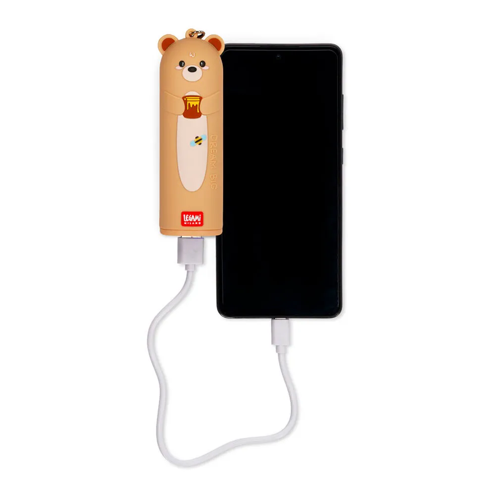 Älä anna kenenkään tyhjentää akkujasi! Legamin kannettavan varavirtalähteen - My Super Power - Nallekarhun avulla sinulla on aina ylimääräinen virta taskussasi! Kannettava varavirtalähde on yhteensopiva älypuhelimien ja tablettien kanssa, ja se voi ladata kahta laitetta samanaikaisesti.