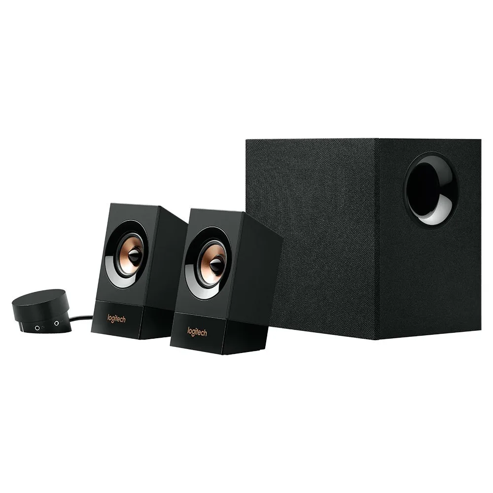 - Tämä 120 watin peak/60 watin RMS -voimakas 2.1-kaiutinjärjestelmä tarjoaa dynaamisen basson sen edestä suuntautuvasta bassokaiuttimesta.