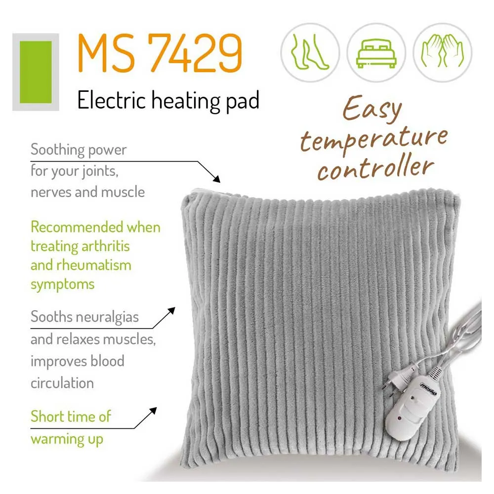 Kun päivät lyhenevät ja kylmenevät, etsimme usein tapoja tehdä iltaistamme kotona mukavampia. Voimakas tuuli ja alhaiset lämpötilat vaikuttavat myös terveyteemme, kuten univaikeuksiin, reumaan tai iskiaseen. Näissä tilanteissa MS 7429 -sähkötyyny, jonka mitat ovat 38 cm x 38 cm, on hyödyllinen. Tynyssä on aukko käsiä tai jalkoja varten.