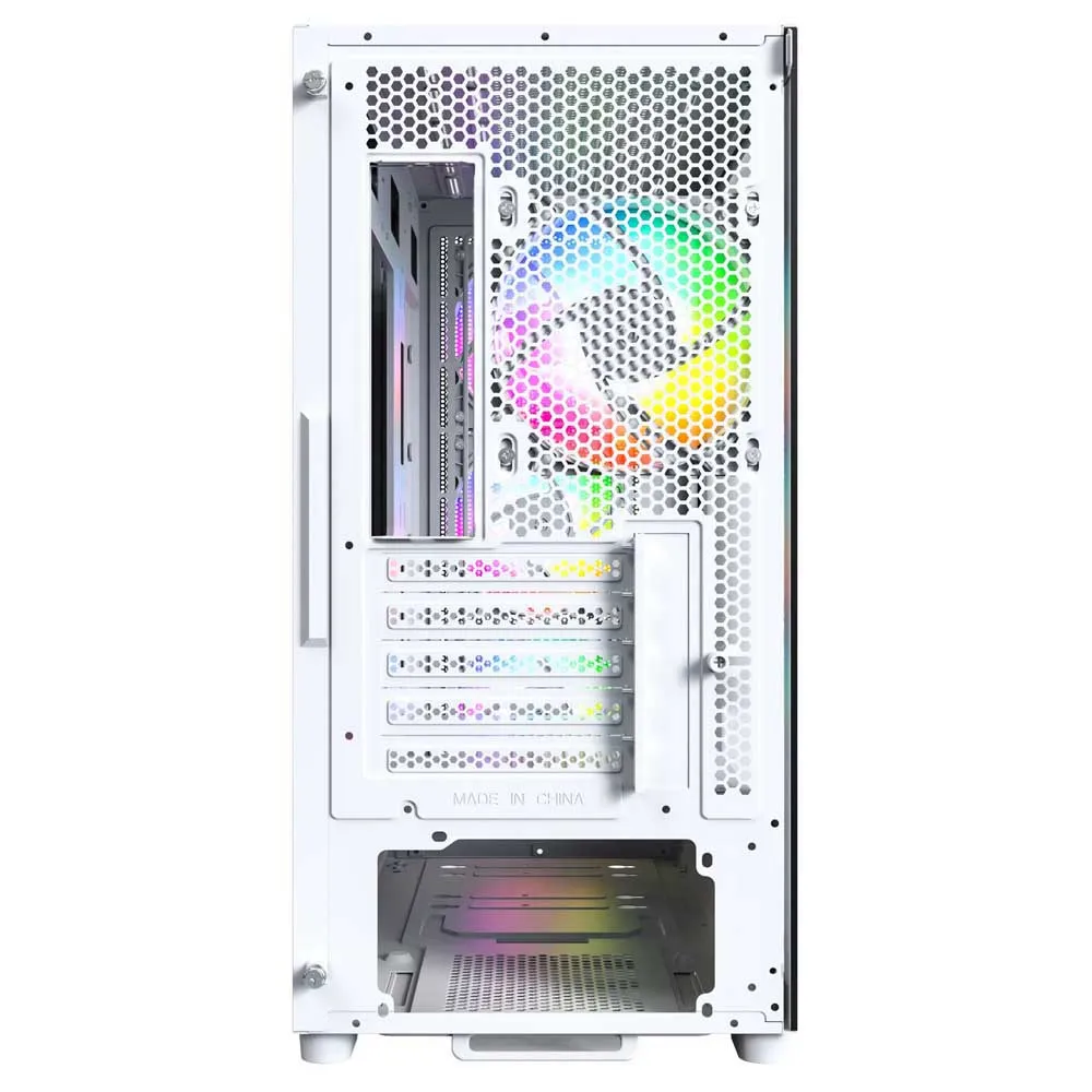 MONTECH X5M:n ydinhyöty on sen ilmiömäinen jäähdytyskyky. Se on heti valmiina varustettu neljällä valmiiksi asennetulla 120 mm:n ARGB-tuulettimella – kolme edessä ja yksi takana – jotka toimivat yhdessä hienon verkkopaneelin kanssa ajaen valtavan ilmamäärän kotelon läpi. Tämä korkean ilmavirran muotoilu varmistaa, että kriittiset komponenttisi, kuten CPU ja GPU, pysyvät optimaalisissa lämpötiloissa jopa intensiivisimpien pelimaratonien aikana, estäen lämpökuristuksen ja maksimoiden suorituskyvyn.