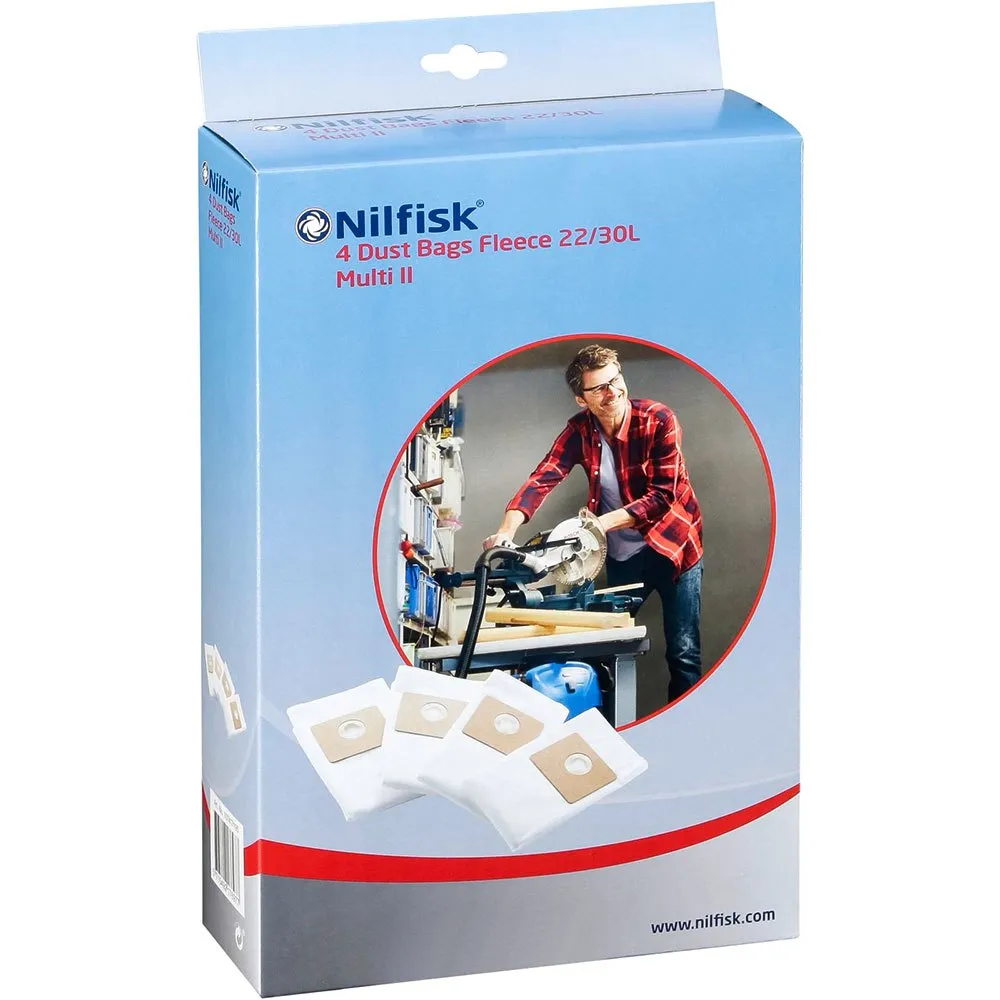 Alkuperäiset Nilfisk-kuitupölypussit Multi II 22/30 märkä- ja kuivaimureihin (4 kpl:n pakkaus)