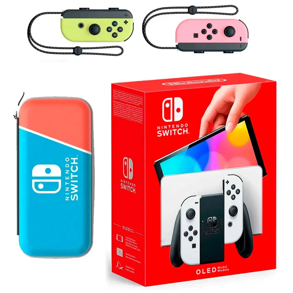 Teknologia Nintendo Switch OLED + 2 Joy-Con-ohjainta + Peli + Kotelo