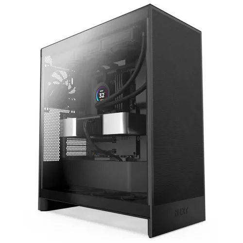NZXT H7 Flow priorisoi ilmankierron tinkimättä estetiikasta. Sen tyylikäs, minimalistinen muotoilu sopii mihin tahansa kokoonpanoon, kun taas älykkäästi suunniteltu ilmankiertotie varmistaa, että komponentit pysyvät viileinä jopa raskaan kuormituksen alla. Rei´itetty etupaneeli mahdollistaa maksimaalisen ilmanoton, kun taas mukana toimitetut 140 mm tuulettimet poistavat tehokkaasti lämpöä. Tämä keskittyminen jäähdytykseen johtaa parempaan suorituskykyyn, pidempään komponenttien käyttöikään ja hiljaisempaan käyttökokemukseen.