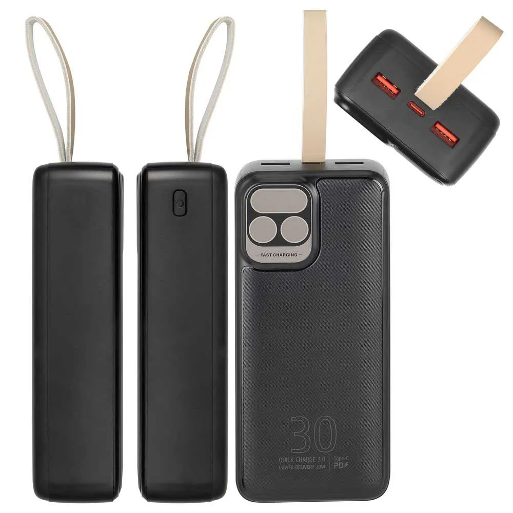 30000 mAh QC/PD 20W kannettava akku LCD-näytöllä, kannettaville tietokoneille.