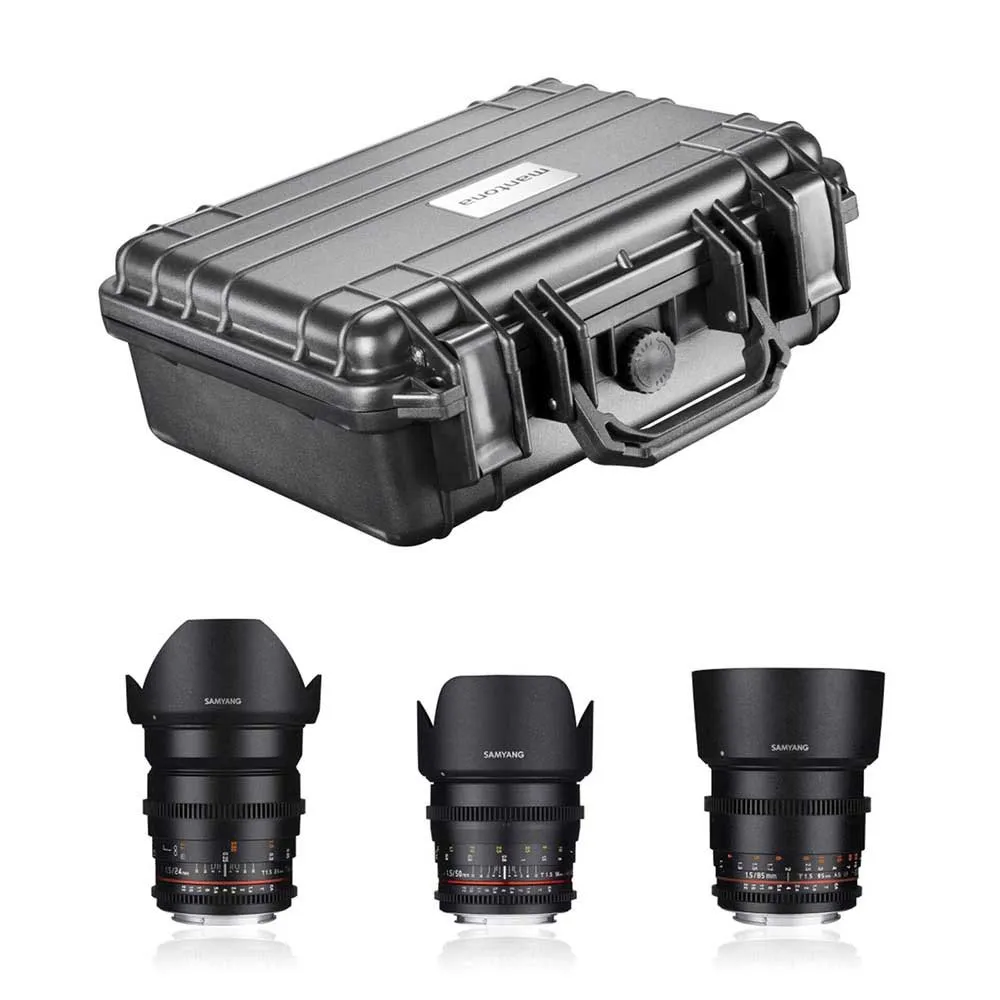 Tuotekuvaus Samyang Sony E DSLR -objektiivien perussetti