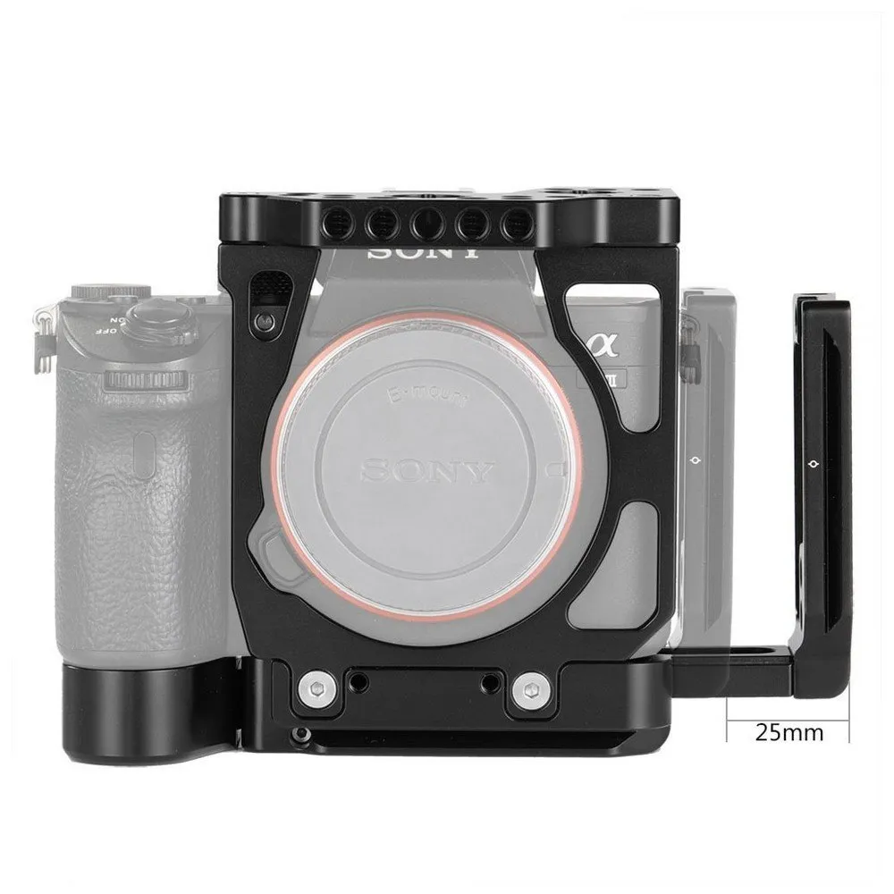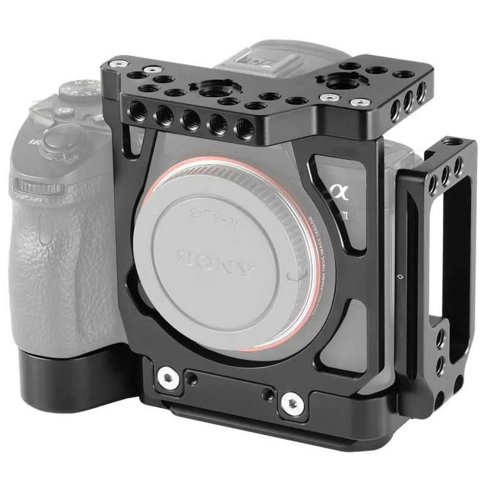 SmallRig-puolihäkki Arca Type L -kiinnikkeellä Sony a7 III:lle ja a7R III CCS2236:lle tarjoaa suojan ja runsaasti lisävarustekiinnikkeitä, sekä Arca-tyyppisen pohja- ja sivulevyn, jossa on modulaarinen L-muotoinen muotoilu, anturin keskitysmerkit jokaisella akselilla. Sen avulla voit nopeasti kiinnittää kamerasi vaaka- tai pystysuoraan Arca-tyyppiseen alustaan. Sivulevy voi liukua jopa 24,5 mm pohjalevystä tehdäkseen tilaa kaapeleille. Pehmeä nahkainen pehmuste kahvaosassa lisää mukavuutta. Lisävarusteiden kiinnitysvaihtoehtoja ovat 1/4´´ 20, 3/8´´ 16 ja 3/8´´ 16 ARRI-tyyliset kiertymisenestotarvikkeet. Voit esimerkiksi kiinnittää SmallRig Top Handle 2165:n tai 1984:n saadaksesi mukavan otteen ja kiinnitä SmallRig Cable Clamp 2259:n, jos sinun on korjattava HDMI-kaapeli. Tämä L-kiinnike ylläpitää pääsyä kameran säätimiin ja sisältää myös etukierteet valinnaisen objektiivisovittimen tuen 1764 kiinnittämiseksi.