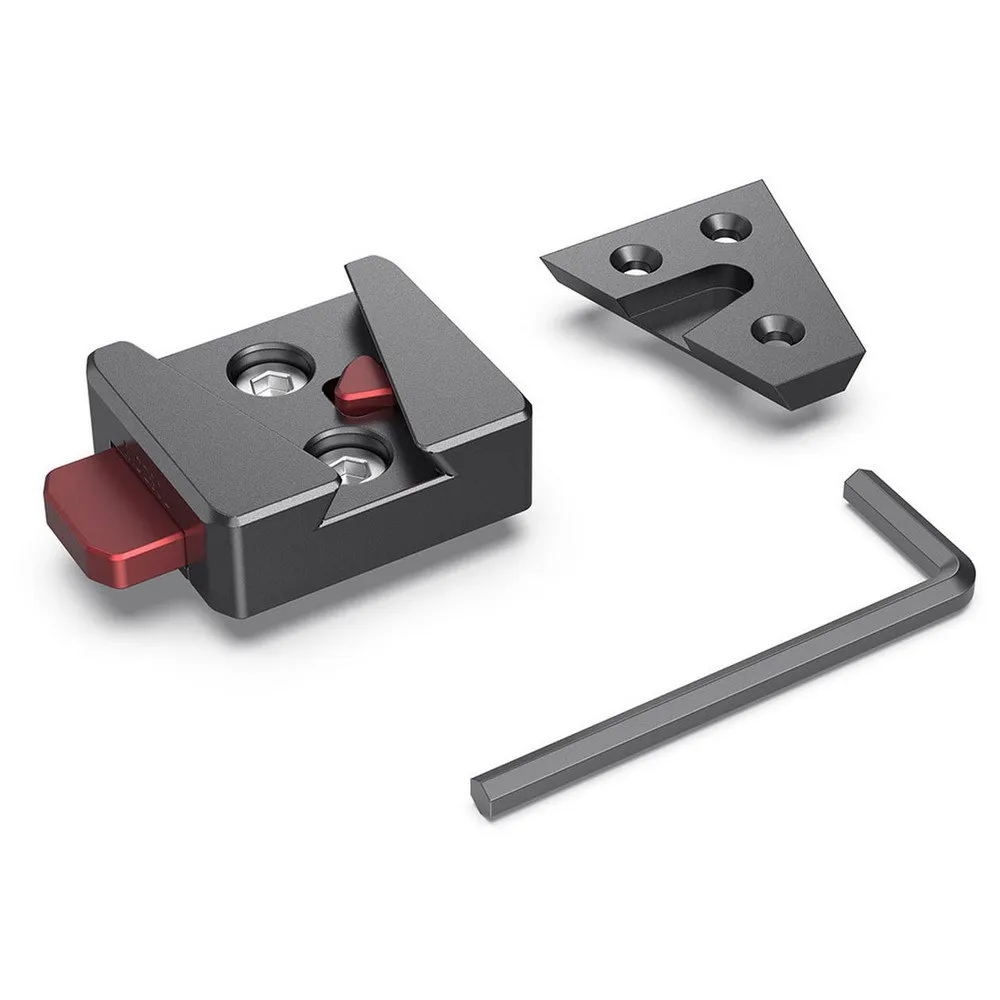 SmallRig Mini V Lock Assembly Kit MD2801 on pikavapautussarja, joka perustuu standardi V-lukkoon. Sen mukana tulee naispuolinen V-telakka ja miespuolinen V-lukko. Female V Dockissa on 2 1/4 20 kiinnitysreikää, ja voit kiinnittää tämän kokoonpanon suoraan SmallRig-kamerahäkkisarjaan, SmallRig-näytön runkoon tai SmallRig-olkatyynykiinnitykseen. Lisäksi voit kiinnittää tämän kokoonpanosarjan SmallRig-akun saranaan MD2802, joka on suunniteltu säätämään akun kulmaa tällä asetuksella kaikkien lisävarusteiden virran saamiseksi, mikä minimoi kameran painon. Kolmella M3-reiällä varustettua V-lukkoa voidaan käyttää V-kiinnitysakun mukana toimitetun alkuperäisen V-lukon tilalle.