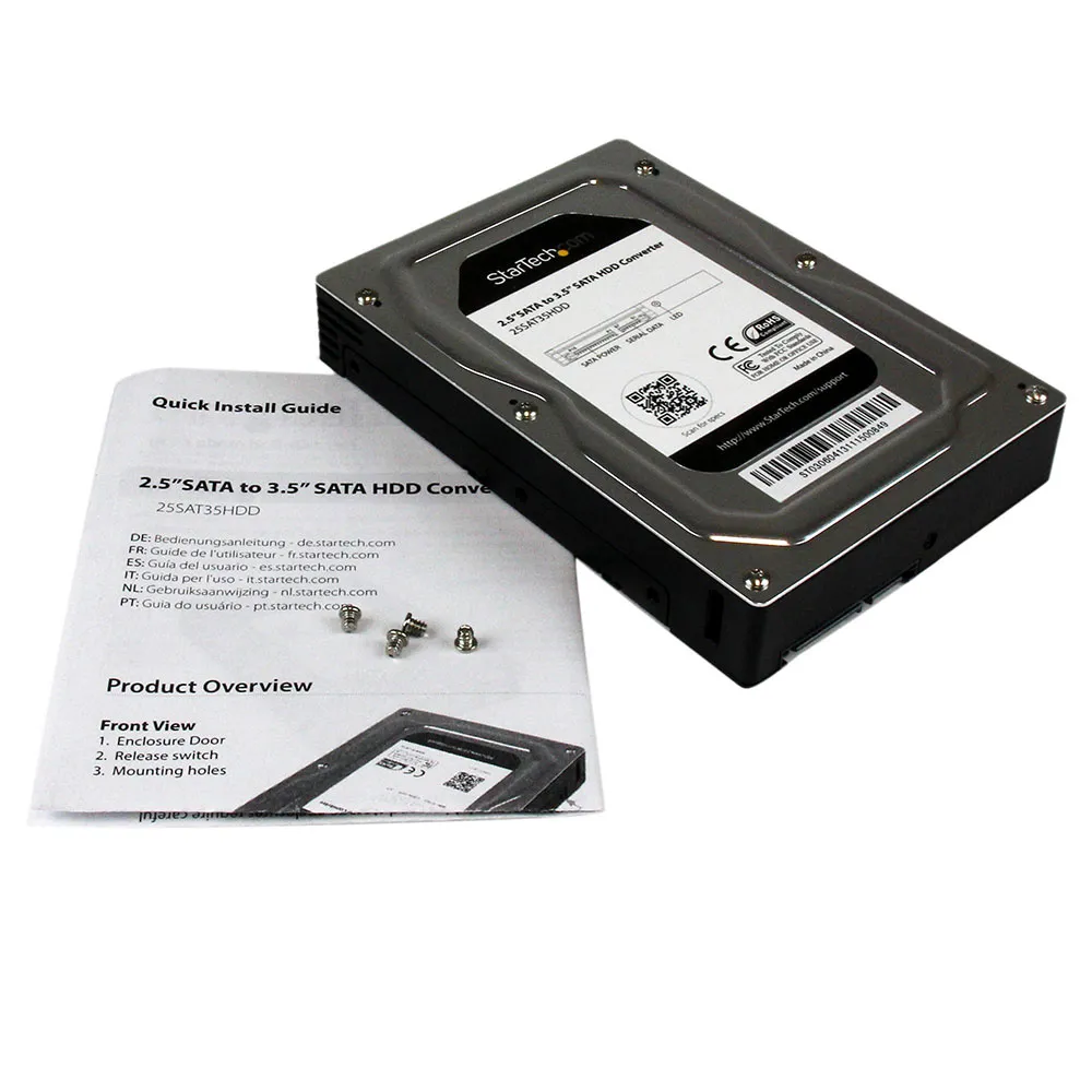 25SAT35HDD 2.5-3.5 -kiintolevysovittimen kotelo muuttaa 2.5 SATA-kiintolevyn (HDD) tai solid-state-aseman (SSD) 3.5-asemaksi.