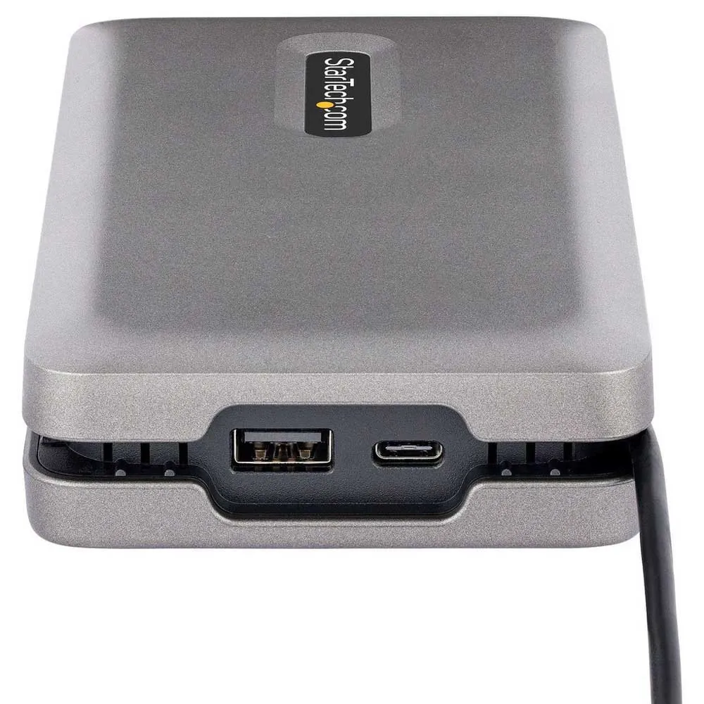 - Kompaktissa Usb Type-C -telakointiasemassa on kolme videolähtövaihtoehtoa, joiden avulla voit muuttaa kannettavan tietokoneen yhden tai useamman näytön työasemaksi.
