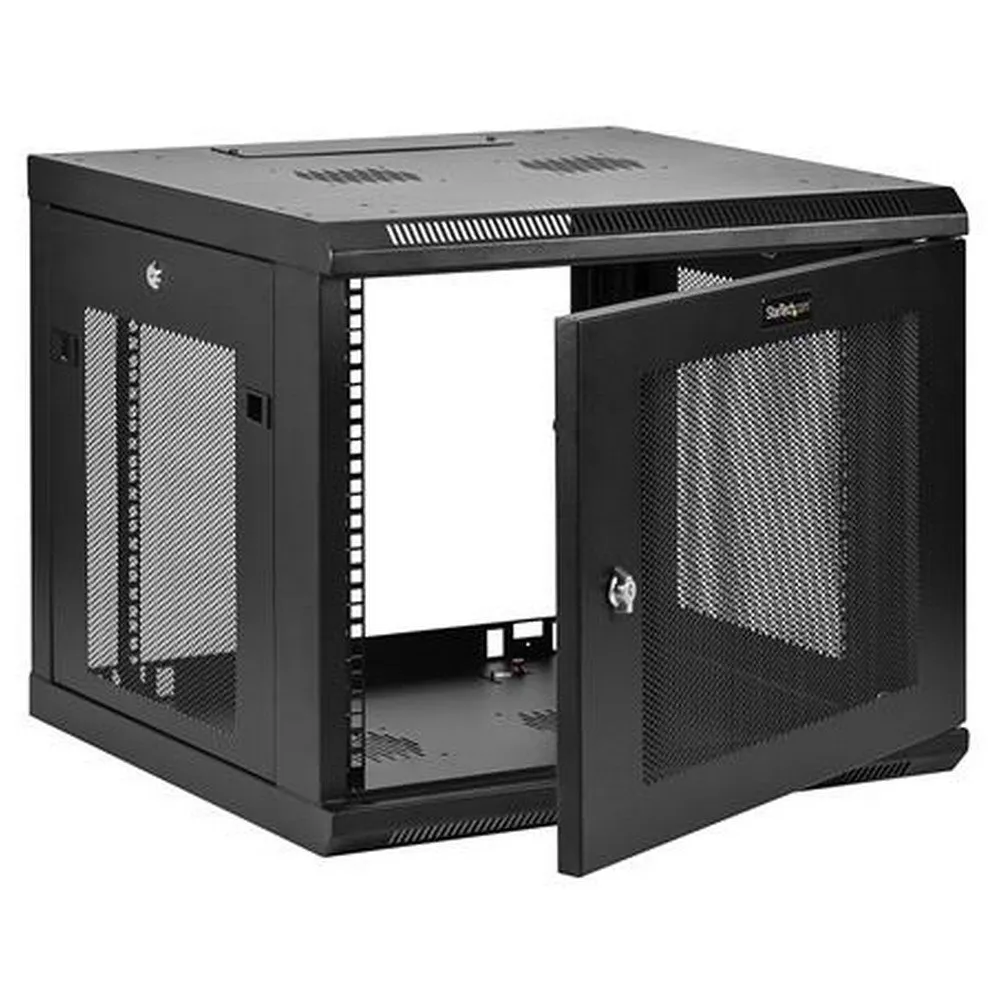 Siinä on verkkokuvioiset ovet ja tuuletetut ylä- ja alaosat maksimaalisen ilmavirran takaamiseksi. - Yksinkertaista ja tukevaa asennusta varten telineen kiinnitysreiät on sijoitettu 16 tuuman välein, joten voit kiinnittää sen turvallisesti seinään käyttämällä seinätolppia.