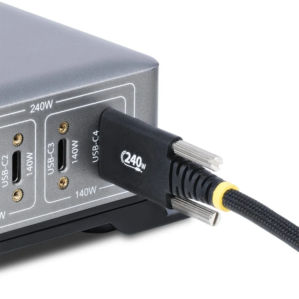 3 metrin USB-C-latauskaapeli - sivukiinnitysruuvit - 240 W (5 A) EPR USB Type-C -latauskaapeli - USB 2.0 - kestävä kaapeli silikonipinnoitteella - USB-IF.