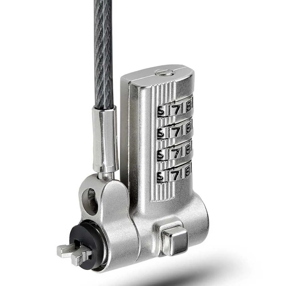 - Nelinumeroinen yhdistelmälukko: Avaimeton kaapelikannettavan lukko käyttäjän asettamissa olevalla yhdistelmäkoodilla, joka mahdollistaa jopa 10 000 yhdistelmää - Sisältää tarranauhan säilytystä varten