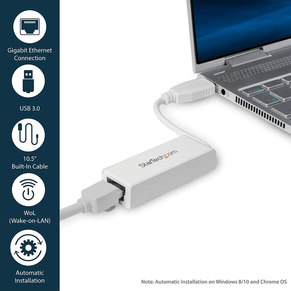 Ominaisuudet Startech USB 3.0 Gigabit Ethernetiin sovitin