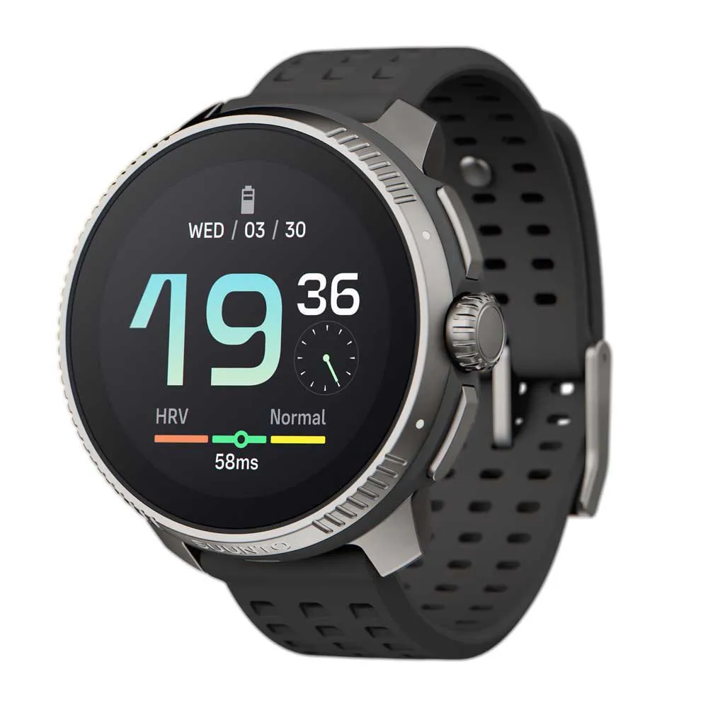 Suunto Race tarjoaa henkilökohtaista palautetta harjoituskuormasta, edistymisestä ja palautumisesta, jotka on laskettu sydämen sykevaihtelun (HRV) perusteella. Suunto Coach valvoo harjoituksiasi ja antaa neuvoja pitääksesi motivaatiosi yllä. Vaikka kellossa on kirkas AMOLED-näyttö, voit silti nauttia SUUNTO RACEn vaikuttavasta akun kestosta: harjoittelun aikana akku voi kestää jopa 40 tuntia parhaalla kaksitaajuisella GNSS-seurannalla, kun taas päivittäisessä tilassa kello voi kestää jopa 12 päivää.