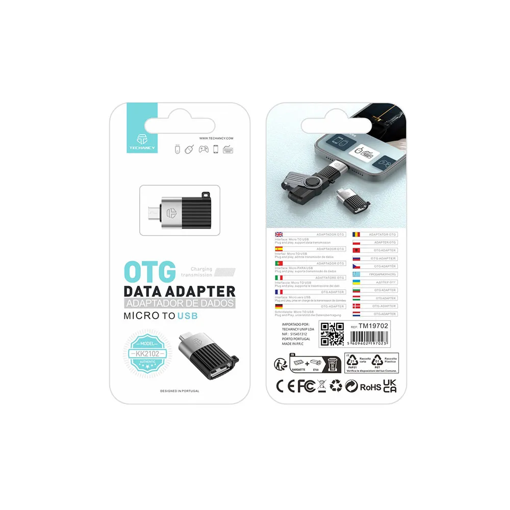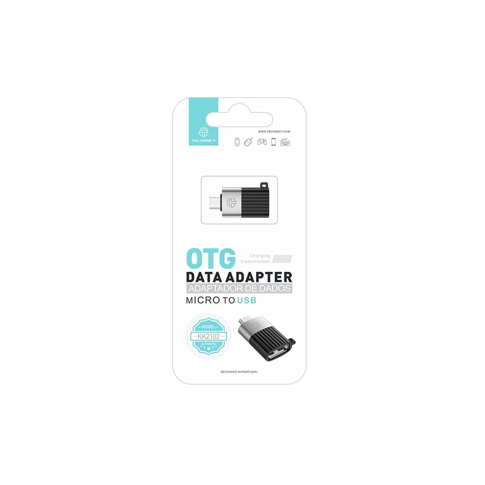Techancy OTG -datasovitin Micro-USB:stä USB:hen sisältää yleensä Micro-USB-liittimen ja tavallisen USB Type-A -liitännän. Tämän rakenteen avulla käyttäjät voivat käyttää mobiililaitteita (kuten älypuhelimia, tabletteja jne.), joissa on Micro-USB-portti, ja saavuttaa tiedonsiirron, tiedostojen jakamisen, laitteiden hallinnan ja muita toimintoja.