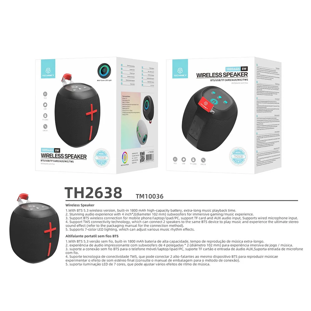 Tuotekuvaus Techancy TH2638 Bluetooth-kaiutin
