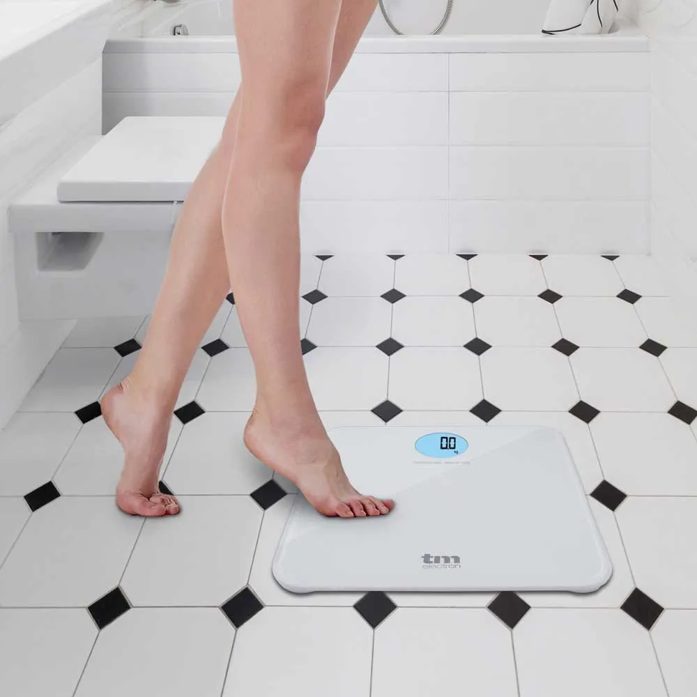 Hallitse painoasi TM Electron karkaistun lasivaa'an avulla. Erittäin ohut, erittäin tarkka ja moderni ja viehättävä muotoilu kylpyhuoneeseesi. Suuren LCD-näytön ansiosta voit aina lukea painostasi hyvin.
