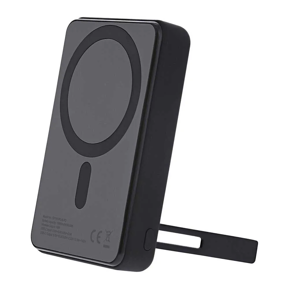 - Taitettavan metallijalan ansiosta voit käyttää varavirtalähdettäsi puhelinjalustana, jotta voit katsella suosikkisisältöäsi pitämättä älypuhelinta käsissäsi sen latautuessa.