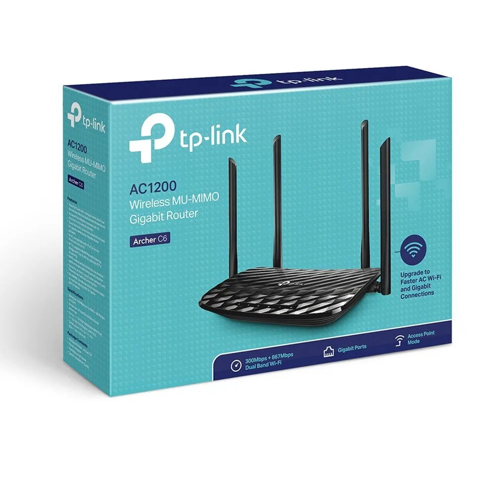 Nauti sujuvasta online-pelaamisesta ja videoiden suoratoistosta kahden taajuuden 1200 Mbps:n Wi-Fi-yhteydellä. 3 ulkoista antennia laajentavat huomattavasti langatonta peittoa. Beamforming-tekniikka tarjoaa erittäin tehokkaan langattoman yhteyden (tuettu versiossa 2.0 ja uudemmissa). Salamannopeat langalliset yhteydet käyttäen neljää Gigabit Ethernet -porttia. 1 USB-portti tukee tallennusta ja tiedostojen jakamista. Helppo asennus ja hallinta Tether-sovelluksella. 1200 Mbps:n Wi-Fi sujuvaan viihteeseen: - Archer C1200 luo luotettavan, salamannopean verkon tehokkaalla 802.11ac Wi-Fi -tekniikalla.