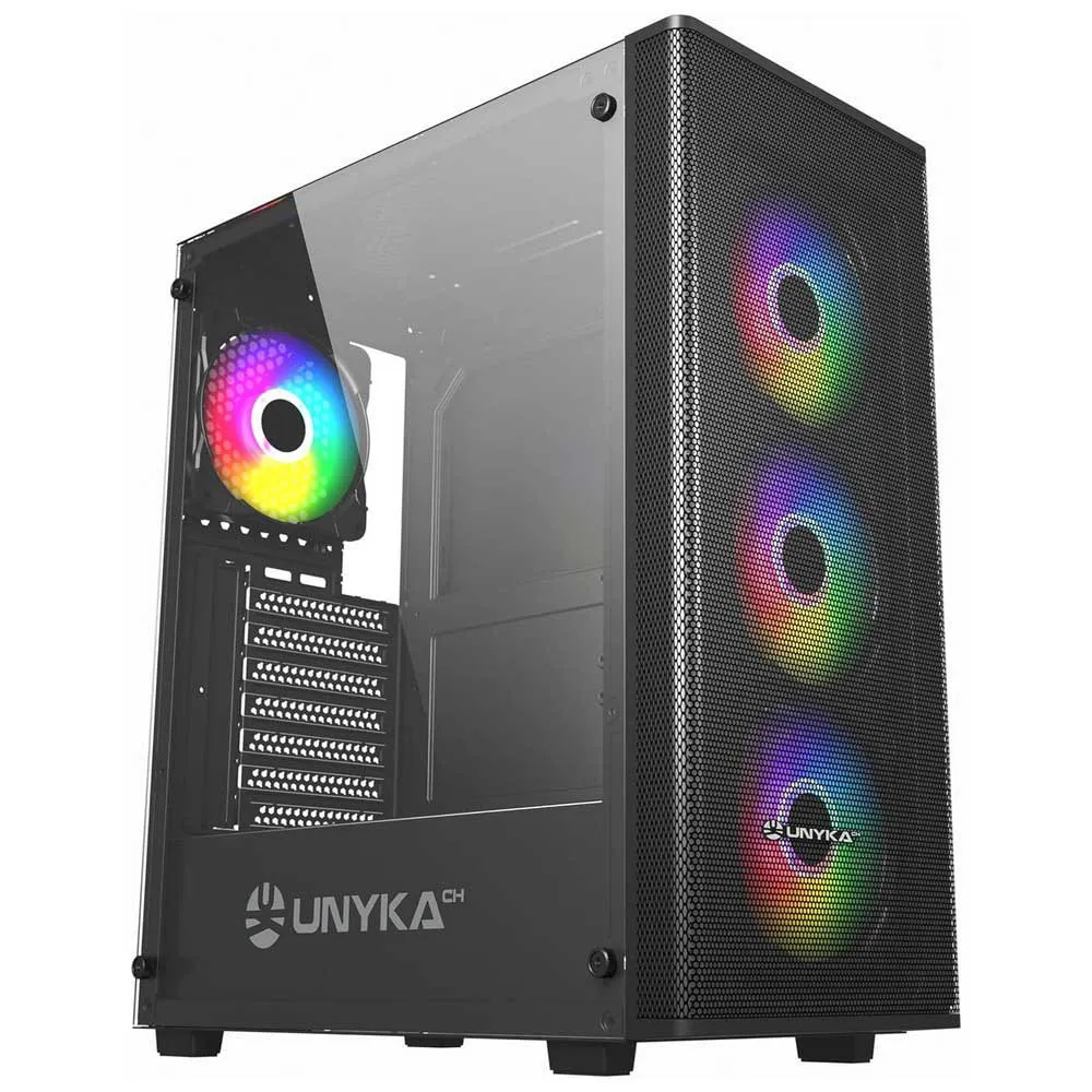 UNYKACH Mir100 ATX -kotelo tarjoaa poikkeuksellista vastinetta rahalle pelaajille ja sisällöntuottajille. Sen tyylikäs, minimalistinen muotoilu on viimeistelty karkaistusta lasista valmistetulla sivupaneelilla ja neljällä esiasennetulla ARGB-tuulettimella, jotka tarjoavat upean ulkonäön ja tehokkaan jäähdytyksen heti alusta alkaen. Tilava sisätila tarjoaa vaikuttavaa monipuolisuutta, tukien täysikokoisia emolevyjä, jopa 340 mm:n näytönohjaimia ja jopa 360 mm:n nestejäähdytystä. Runsaiden tallennuspaikkojen ja vankkojen jäähdytysvaihtoehtojen ansiosta Mir100 on täydellinen perusta tehokkaalle, budjettiystävälliselle kokoonpanolle, joka ei tingi tyylistä