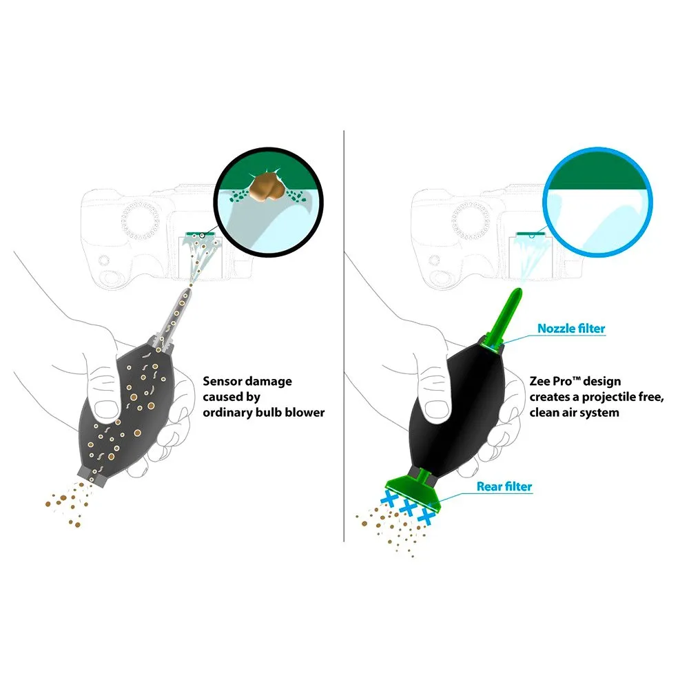 Zee ™ Pro on laaja ja todistetusti turvallinen polttimonpuhallin. Se on suunniteltu erityisesti herkille ja herkille toimenpiteille, kuten digitaalikameran anturin puhdistamiseen.