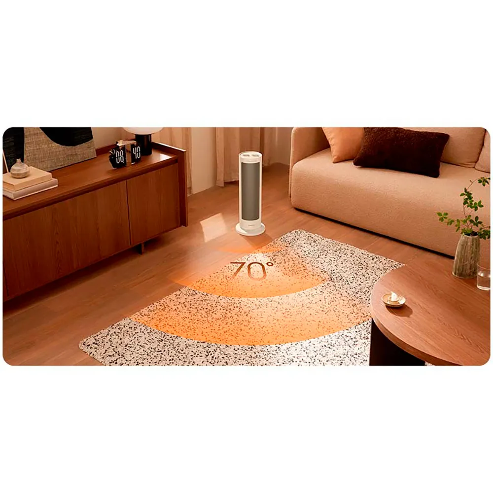 - Laajan ilmansyöttökulmansa ansiosta lämpöpuhallin pystyy saavuttamaan 70º, mikä on ihanteellinen sijoitettavaksi lähelle nurkkaa pienessä huoneessa.