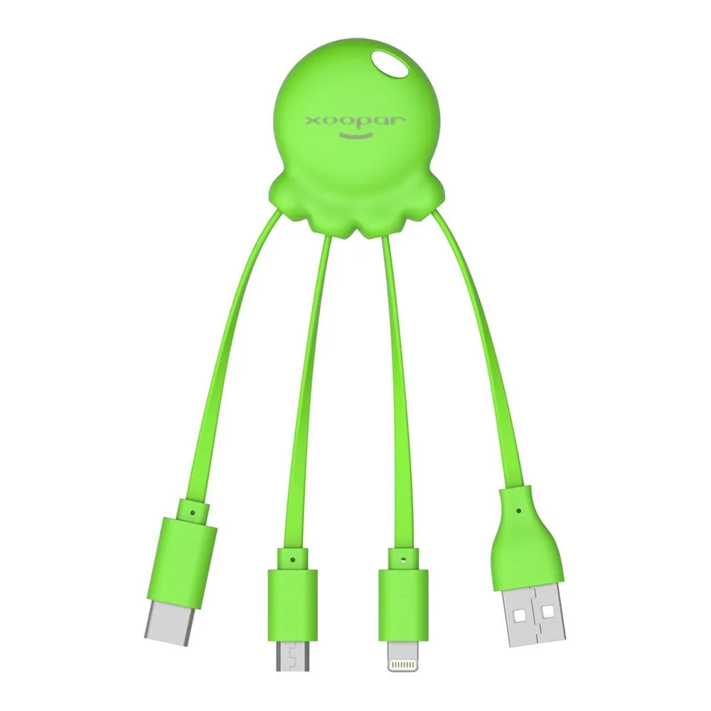 Kannettava monikaapeliratkaisu kaikille älypuhelimille, joissa on USB-, mikro -USB-, tyyppi C- ja Lightning -sovittimet. Yhdistä USB virtalähteeseen tai verkkolaitteeseen ja mikä tahansa oikea sovitin älypuhelimeesi latausta varten. Älä enää huolehdi sotkuisista kaapeleista, vahva Octopuksen kudottu kaapeli ei sotkeudu taskuihisi. Sisältää avaimenperäreiän siirrettävyyttä varten.