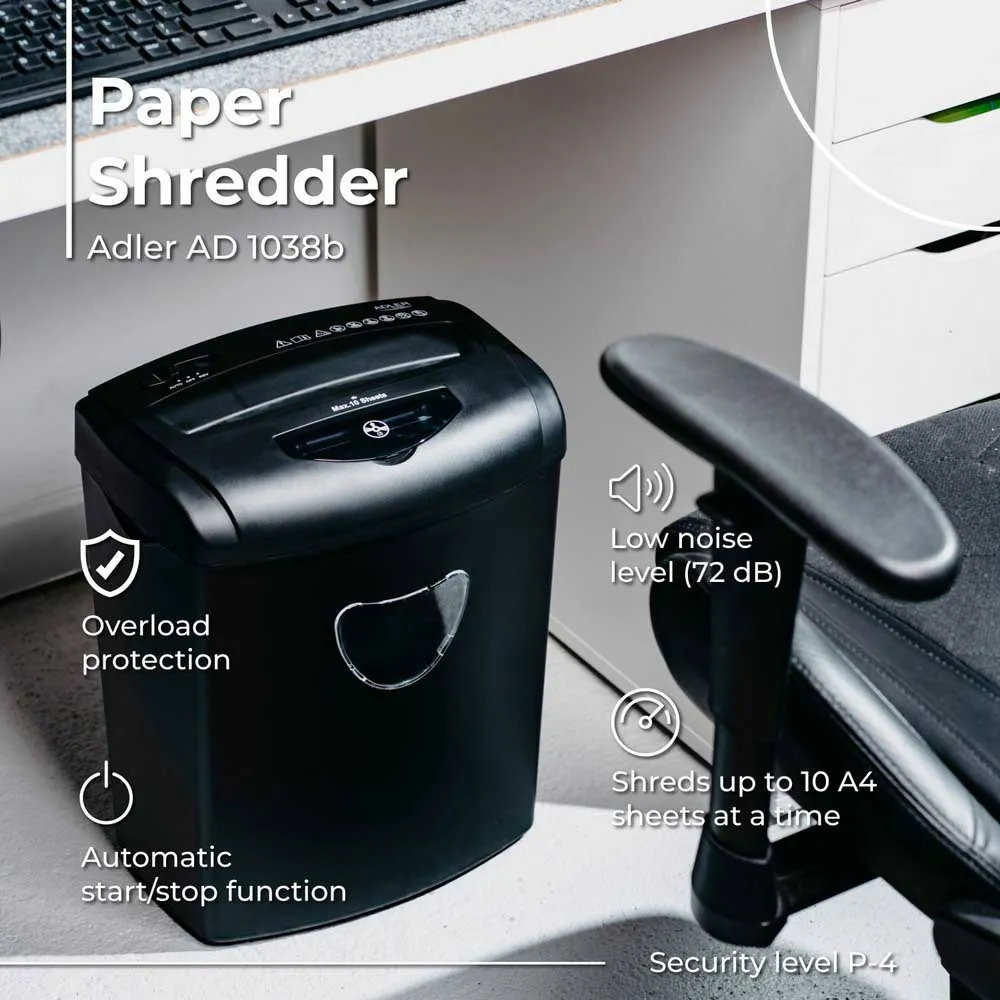 L´Adler AD 1038 est un destructeur de documents haute performance conçu pour la destruction sûre et efficace de documents confidentiels.