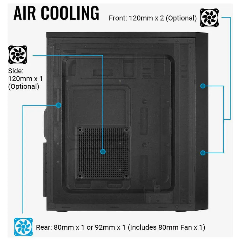 Il prend en charge la ventilation avant, latérale et arrière pour maximiser ses performances et est équipé d´un ventilateur arrière de 80 mm.