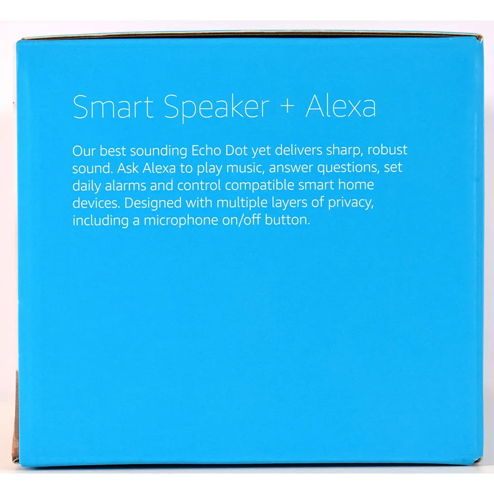 Conçu pour la confidentialité : Construit avec plusieurs couches de protection de la vie privée, y compris un bouton physique de désactivation du microphone. Compatible avec le Climate Pledge : Conçu de manière durable à partir de tissus et de plastiques recyclés.