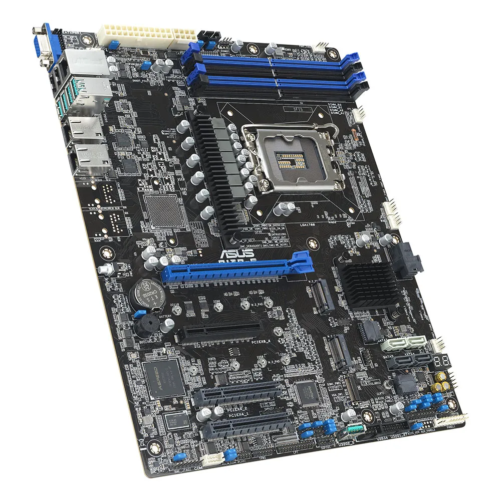 ASUS P13R-E est une carte mère serveur ATX Intel® Xeon® E-2400 et Intel® Xeon® 6300 LGA 1700 avec quatre emplacements DDR5 ECC UDIMM, deux emplacements M.2, deux ports LAN, huit ports SATA, deux emplacements PCIe® 5.0, deux emplacements PCIe 4.0, quatre ports USB 10 Gbps, deux ports USB 2.0 et un module de gestion ASUS ASMB11-iKVM intégré.