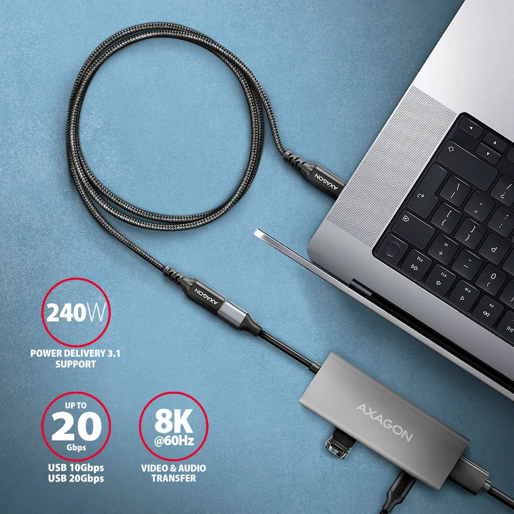 Extension de données et de chargement USB-C AXAGON BUCM32-CF05AB SPEED+ EXTENSIONS Câble USB 3.2 Gen 2 avec connecteurs USB-C mâle et USB-C femelle.
