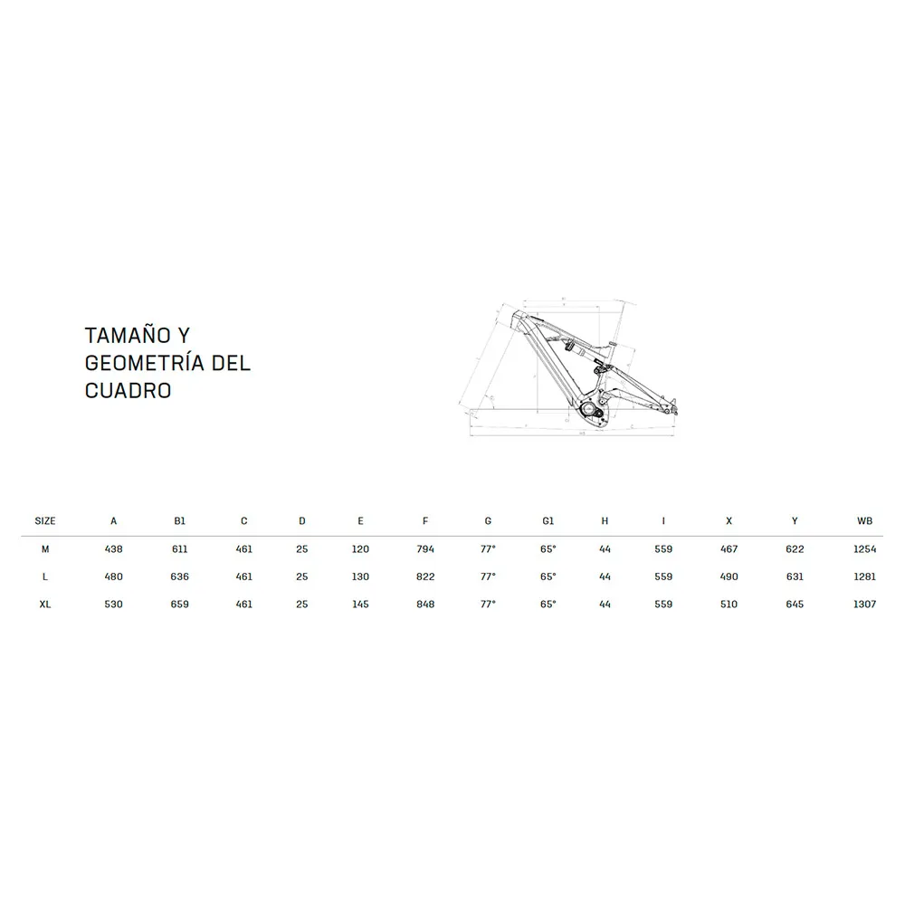 E-Vertic Fx-Type Tailles 43, 48, 53 - Pattes d´axe traversant 12x148 mm - Type de frein à disque Post Mount 180 - Débattement de 140 mm avant et arrière - Passage interne des câbles dans le pivot de fourche.