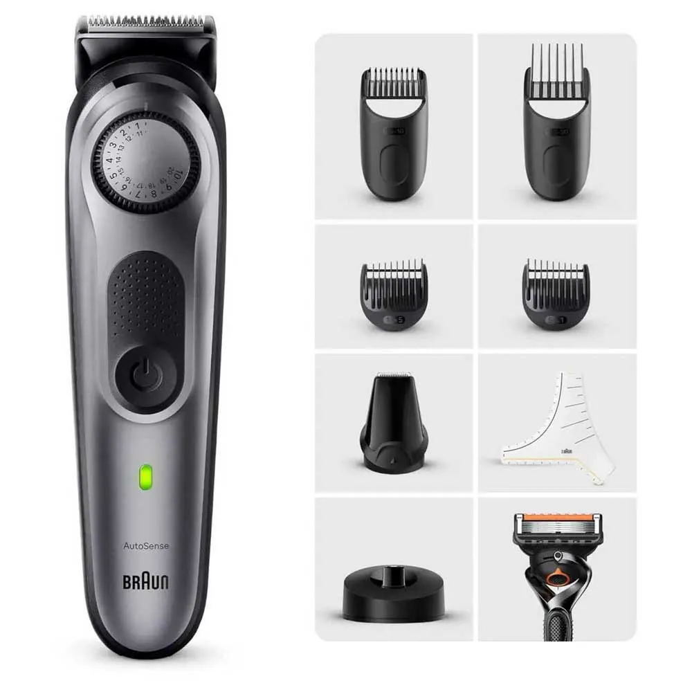 Maîtrisez votre style avec la tondeuse à barbe et rasoir Braun BT7420, votre outil tout-en-un pour des résultats de barbier à domicile. Ajustez votre look parfait avec la molette de précision ProWheel, offrant 40 réglages de longueur pour une précision inégalée. La lame ProBlade affûtée à vie et la technologie AutoSense s´adaptent à votre barbe, offrant une coupe douce et sans accroc à chaque fois. Taillez, détaillez et rasez en toute confiance grâce aux têtes spécialisées. Profitez de 100 minutes d´autonomie sans fil, d´une charge rapide de 5 minutes et d´un nettoyage simple et hygiénique grâce à son design 100 % étanche