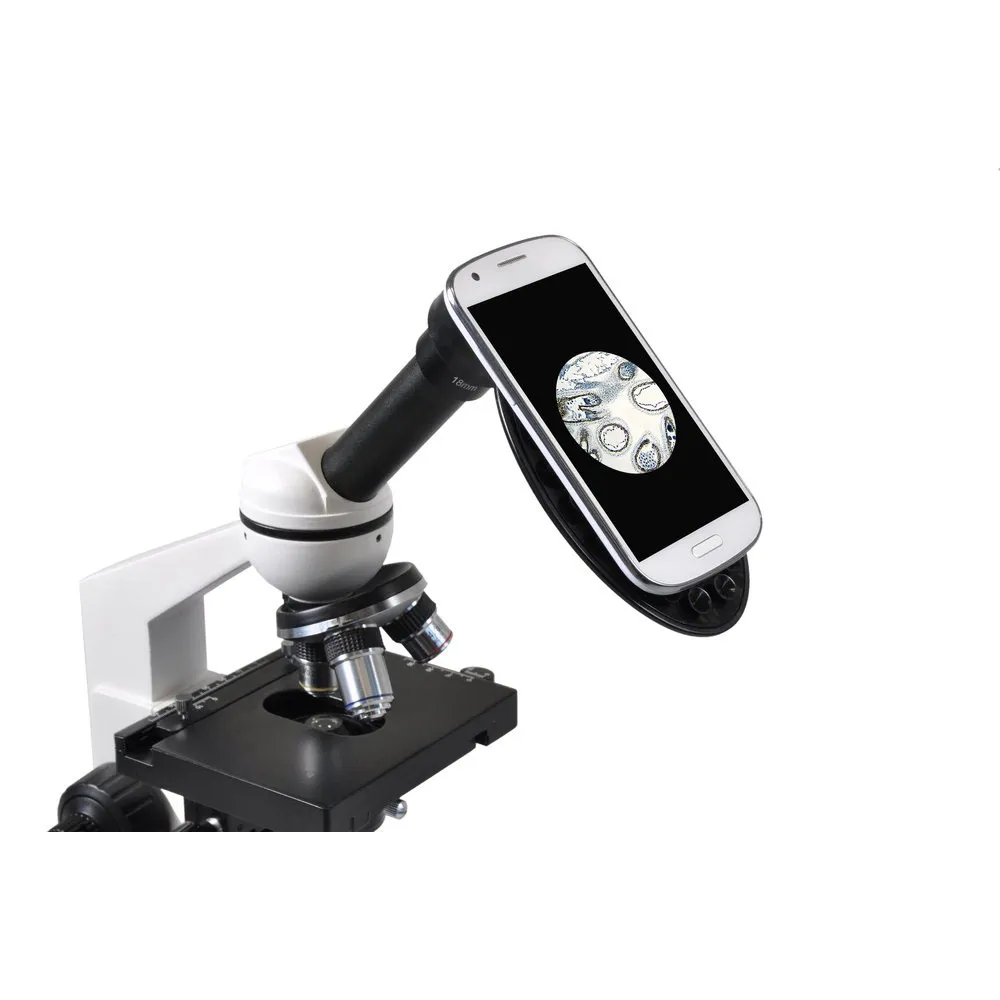 Le BRESSER Erudit Basic mono est livré avec une mallette robuste pour le transport et le stockage, ainsi qu´avec un support pour smartphone pour une documentation facile et pratique des images et vidéos microscopiques.